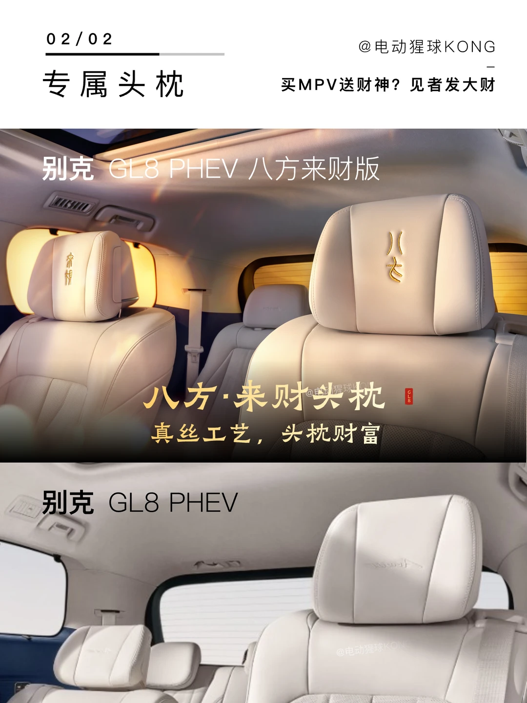 👨‍💼老板们对MPV的要求有多高?已经内卷到了寓意的份上 💰GL8的名字就很有意思:Good(G)Luck(L)888(8),这波推出的限量“财神版”太懂老板们了,做生意,“财神”谁不想要? 💁一口气看懂,这辆车有哪些专属设计: “金顶青云”双色车衣:好家伙,上来就是豪车标配的双拼色,尊贵感和辨识度拉满,选择青云车身和香槟金顶,寓意很明显:平步青云,事业精进~ 🧵“八方来财”羽感座椅、“背靠金山”苏绣腰靠:很直接,两个独立头枕上刺绣有“八方”和“来财”,中国传统的金色篆体字,而且材料用的是真丝,背靠采用四大名绣之一的苏绣工艺,织绘出青山高矗、劲松挺拔、“金瀑”倾泻而下的瑰丽图案,好家伙,头枕财富,背靠江山,老板们上车的情绪价值完全给到~ 💪除了GL8 PHEV“财神版”的专属设计以外,这辆车的产品力,本身也够强 🚀搭载行业顶流 “真龙” 插混系统,满油满电续航过千,哪里都能去。 底盘经精心调校,堪称 “防晕大师”,平稳性拉满,车内小憩、接待客户,给客人满满的高级感。 🛋️车内,Nappa 真皮羽感航空座椅,老板们通勤、出行,车内化身陆地头等舱。NOP 智慧领航精准辅助驾驶,AI 大模型语音助手,15.6 吋后舱智慧屏娱乐功能丰富,娱乐、智能配置,一个都不能少,看着电影化解路途的无聊,开关空调、调整座椅、调节音量等等操作,语音控制无需动手,不要太惬意 。 📊最后说一个都能看懂的数据:连续3年,别克GL8家族蝉联MPV保值率榜首,汽车虽然作为消耗品,但GL8总能为老板们,把财守住!GL8 PHEV“财神版”不仅能招财,还能守财~