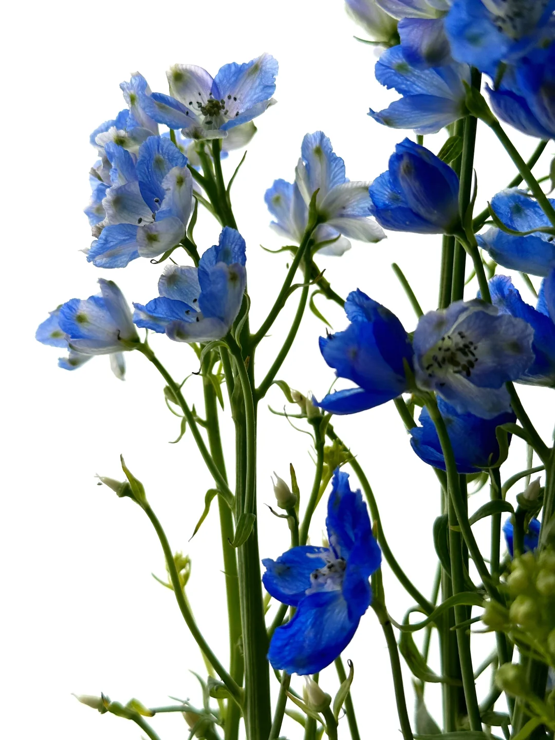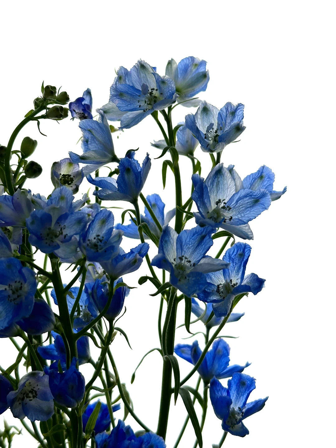因其花色大多为蓝紫色或淡紫色,花型似蓝色飞燕落满枝头,因而又名“飞燕草”,是珍贵的蓝色花卉资源,具有很高的观赏价值。相比于大飞燕,小飞燕有分叉,整体植株矮小,大约只有30-40公分。花瓣更薄,整体感觉更加轻盈。但是也正因为如此,花期更短。