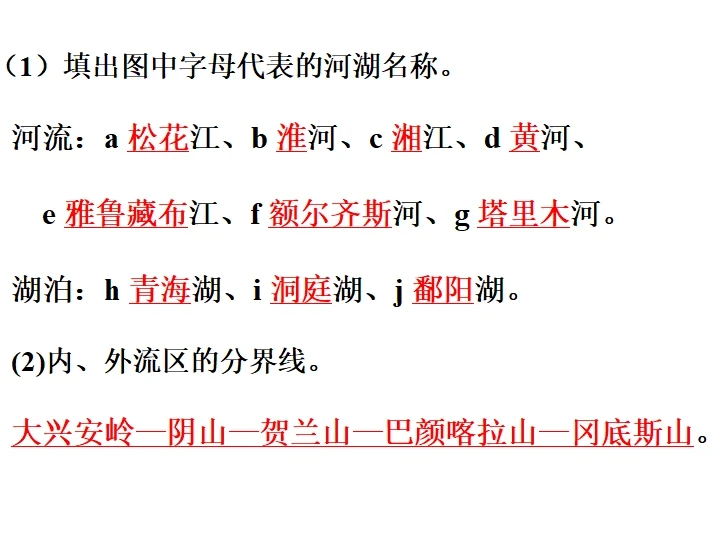 🌐我国外流河水文特征的差异 [一R] 东北——黑龙江、松花江:水量丰富(流经湿润、半湿润区)汛期较短(有春汛、夏汛)含沙量小(森林茂密) 结冰期长(纬度高,位于中温带、寒温带)。 [二R]秦岭——淮河以北海河、黄河: 水量较小(流经半湿润、半干区)汛期短(雨季短)含沙量大(植被少,水土流失严重)结冰期短(位于暖温带、中温带) [三R]秦岭—淮河以南长江、珠江: 水量丰富(降水量大,流经湿润区)汛期长(雨季长)含沙量小(流域内植被覆盖率高)结冰期无(流经亚热带、热带,冬温在0 ℃以上)