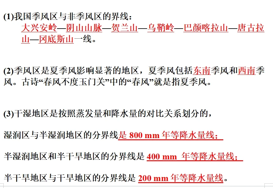 🌐2023.03.19中国地理——降水 [一R]空间分布规律:自东南沿海向西北内陆逐渐减少 [二R]时间变化规律:①季节变化降水季节分配不均,降水集中在5月至9月的夏秋季节②年际变化各地降水年际变化大,南方较小,北方较大,西北干旱地区最大。