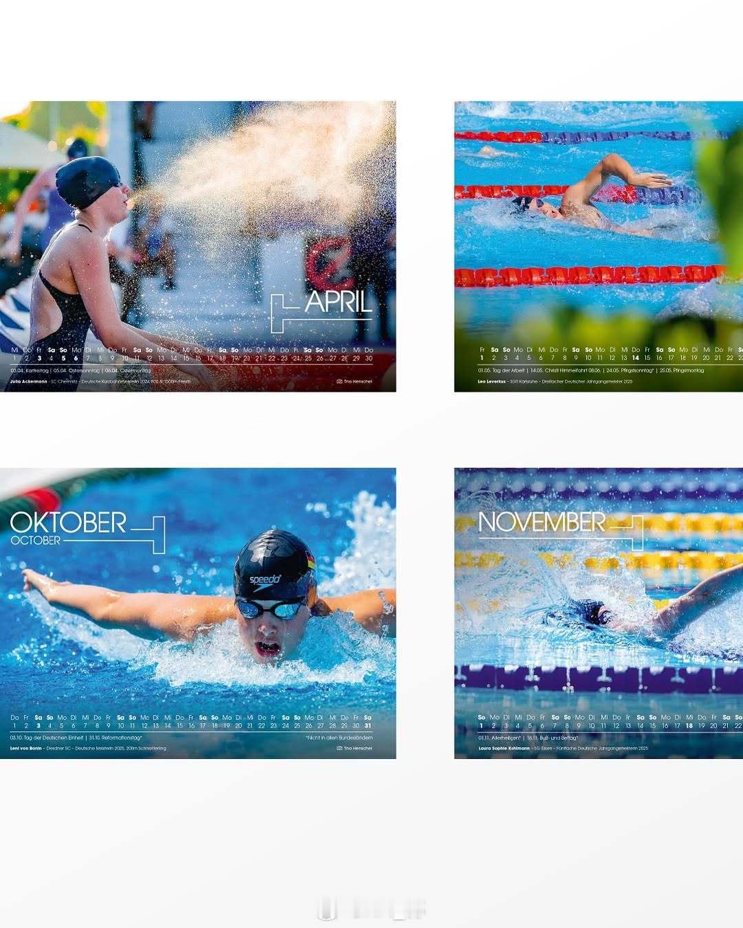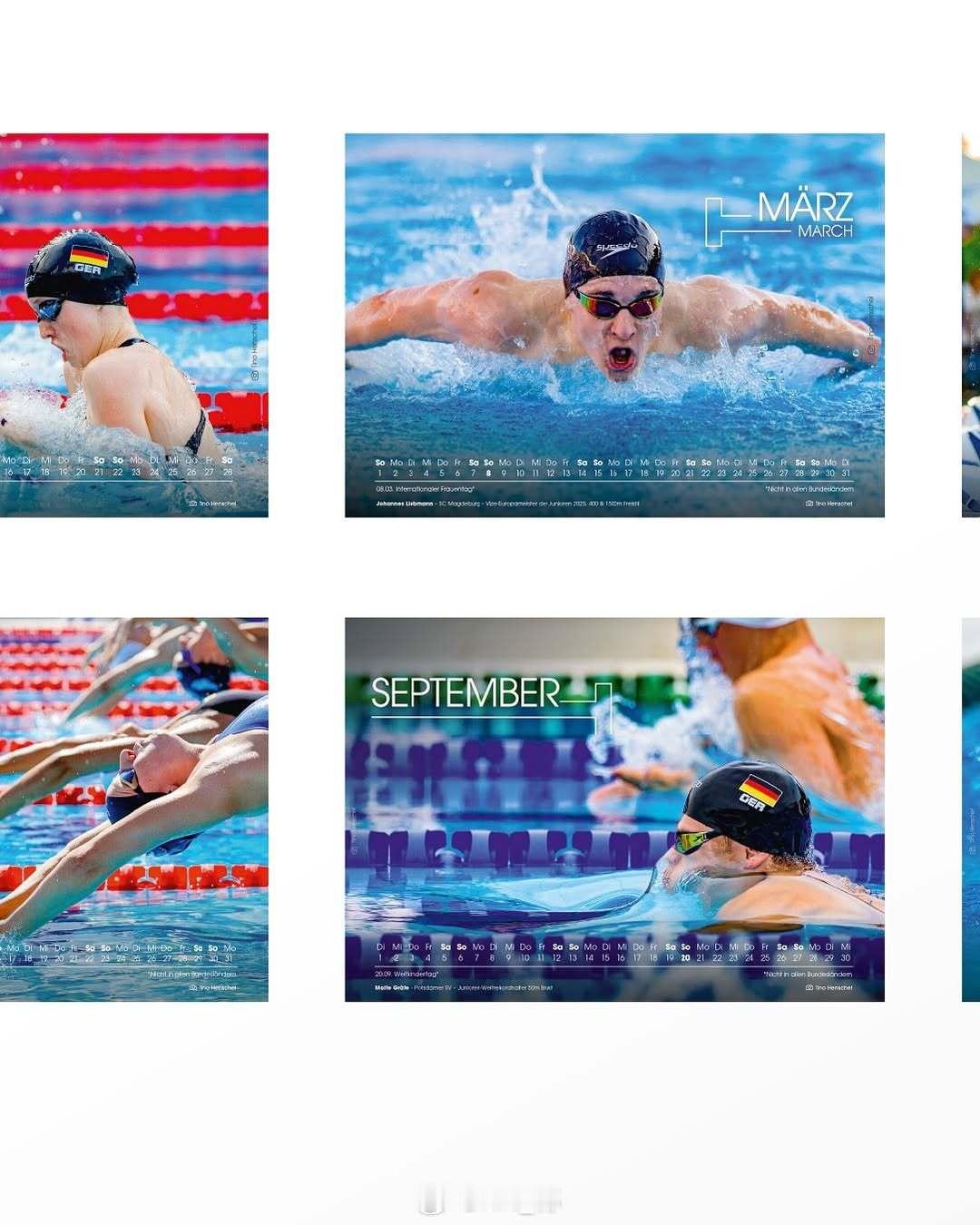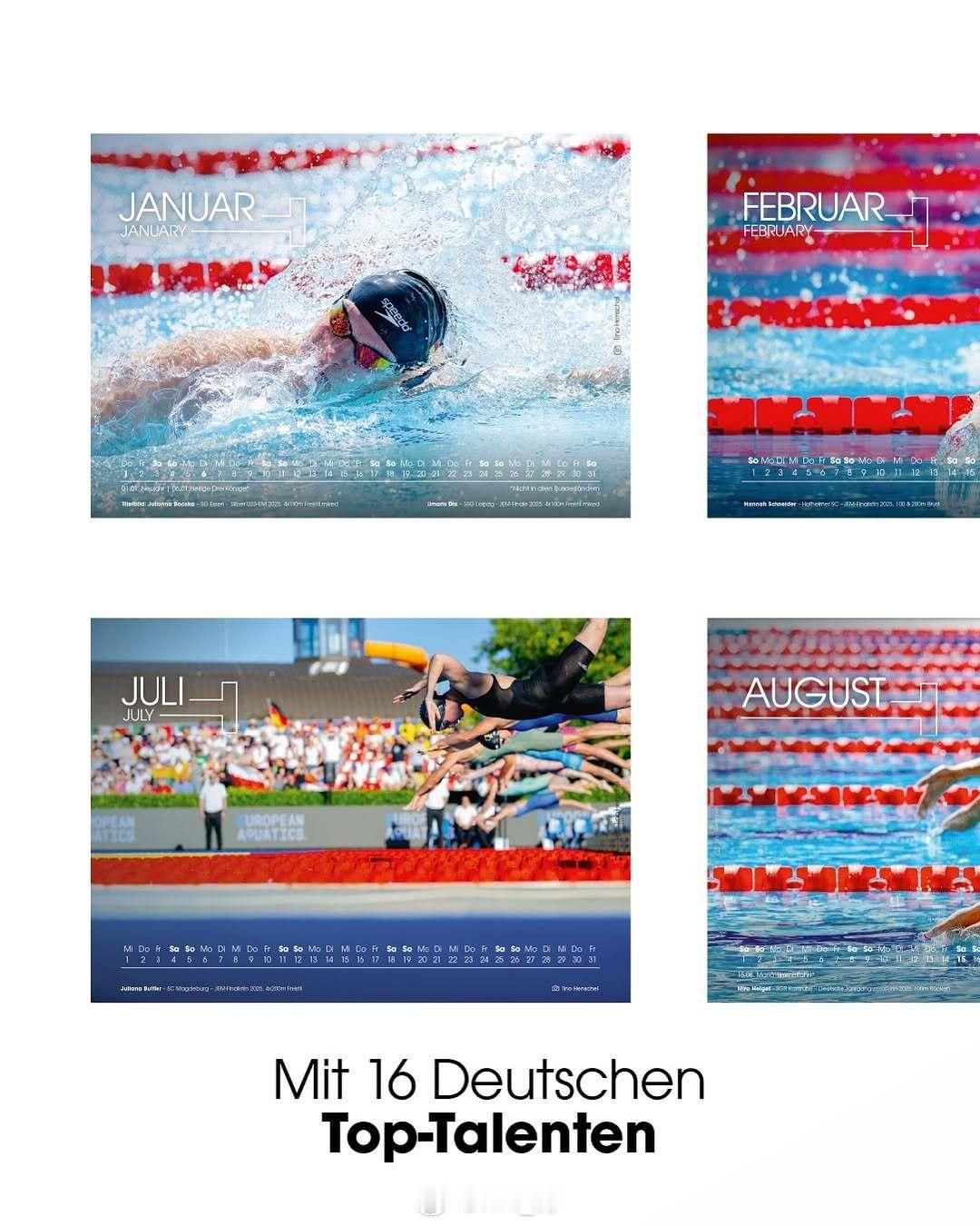 德国🇩🇪游泳网站将摄影师在今年欧洲青年游泳锦标赛拍摄的图片📷制作成2026年日历🗓对外发售