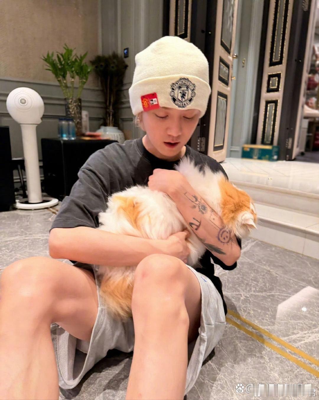 鹿晗是不是抱不动馒头啦?才特意发文对馒头说:不能再吃了。