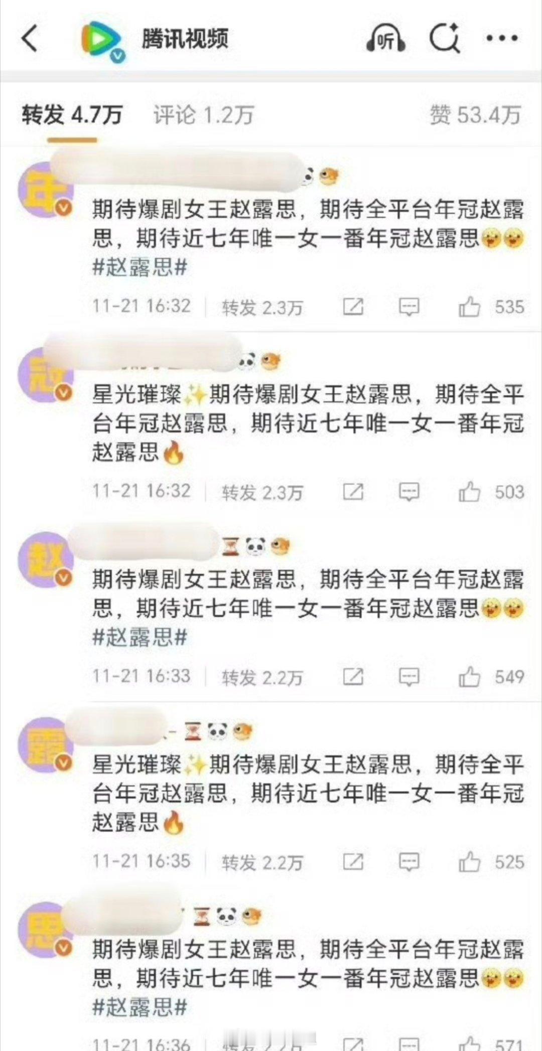🐧的星光大赏评论区前排都是鞠婧祎粉丝的占领,转发区前排都是赵露思粉丝的占领,这