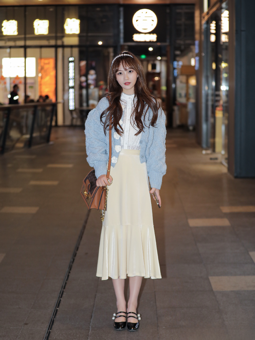 粉色开衫配绿色开衩裙,清新又显白,脚踩同色系人字拖,这配色和穿搭绝了,氛围感直接