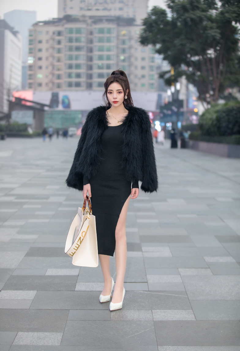 黑裙搭配黑丝,婀娜妩媚的身姿,谁看谁不迷糊