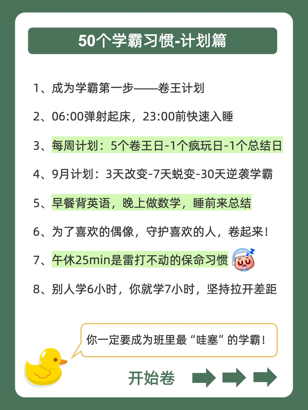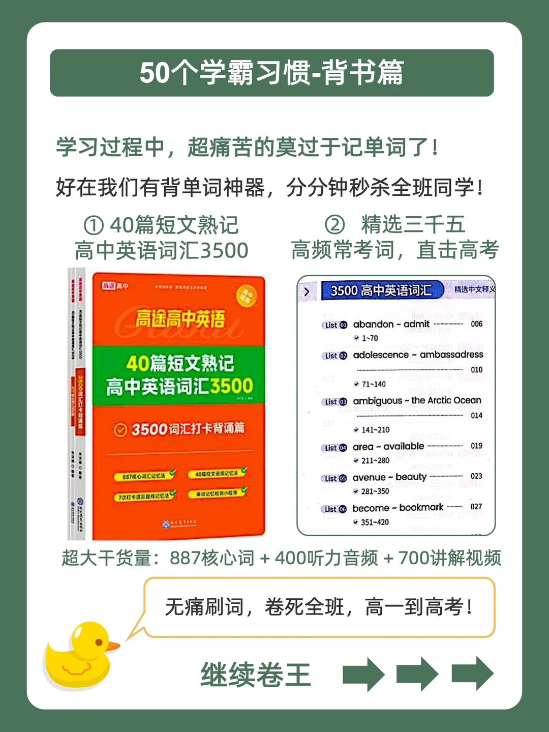 . [赞R]学习摆烂不用怕,鸭鸭带你做学霸❗ . [向右R]有同学说开学想要逆袭,但不知道咋做无从下手[石化R] . [飞吻R]鸭鸭这么宠粉,肯定会偷偷告诉你们方法的哇![赞R] . 今天就来分享,50个学霸提分微习惯,搭配卷王神器高途3500词,从此学嗨玩爽,逆袭学霸![赞R] . ️🐣我是鸭鸭,持续更新优质学习方法,陪宝子们逆袭学霸,驰骋学海!🌊