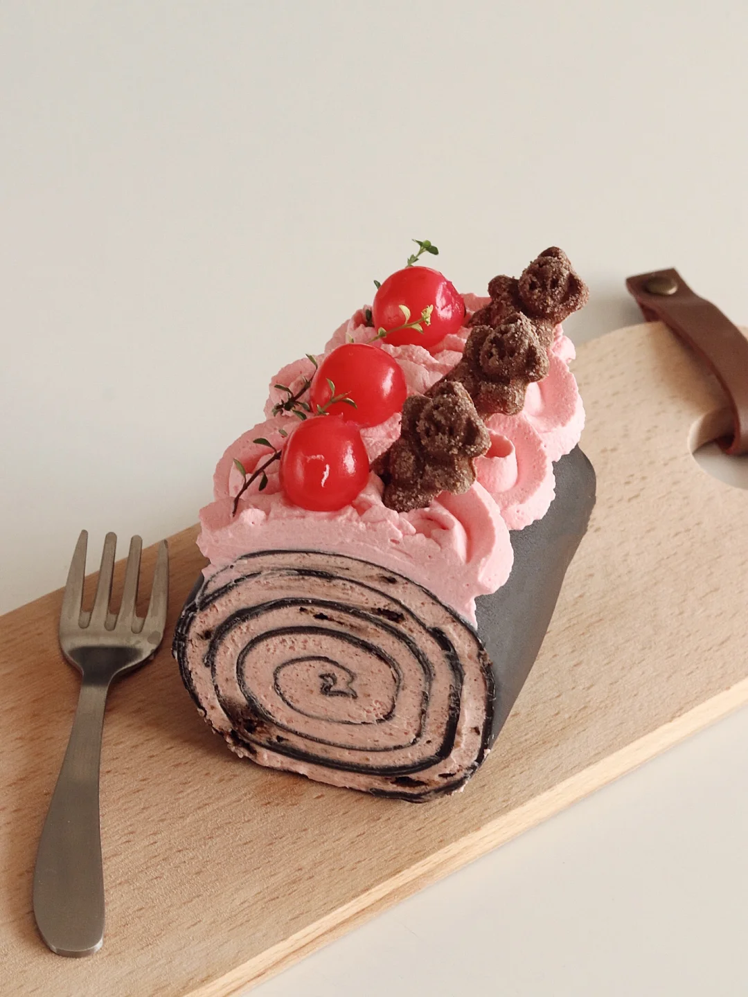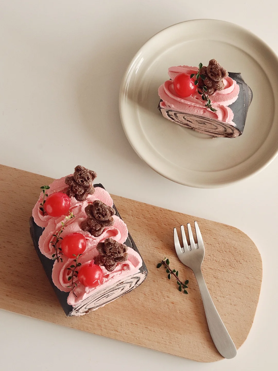 ❼装饰用奶油食材混合打发后挤在蛋糕上,再用樱桃🍒和饼干装饰即可
