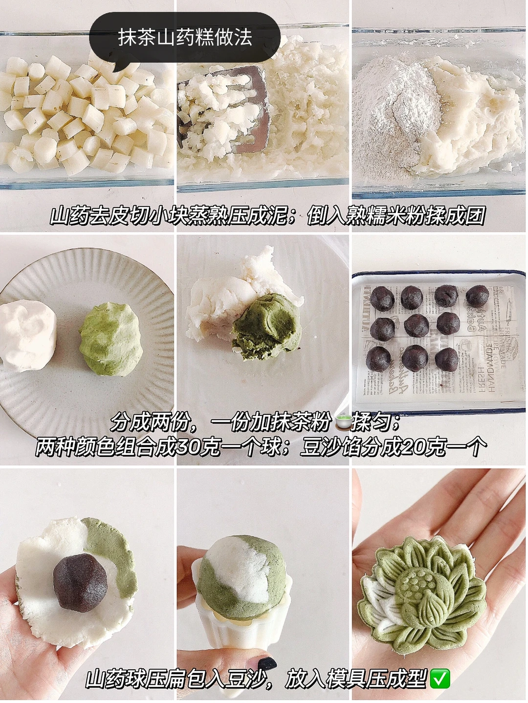 铁棍山药 300g|熟糯米粉 50g|抹茶粉 2g|豆沙馅 20g/个