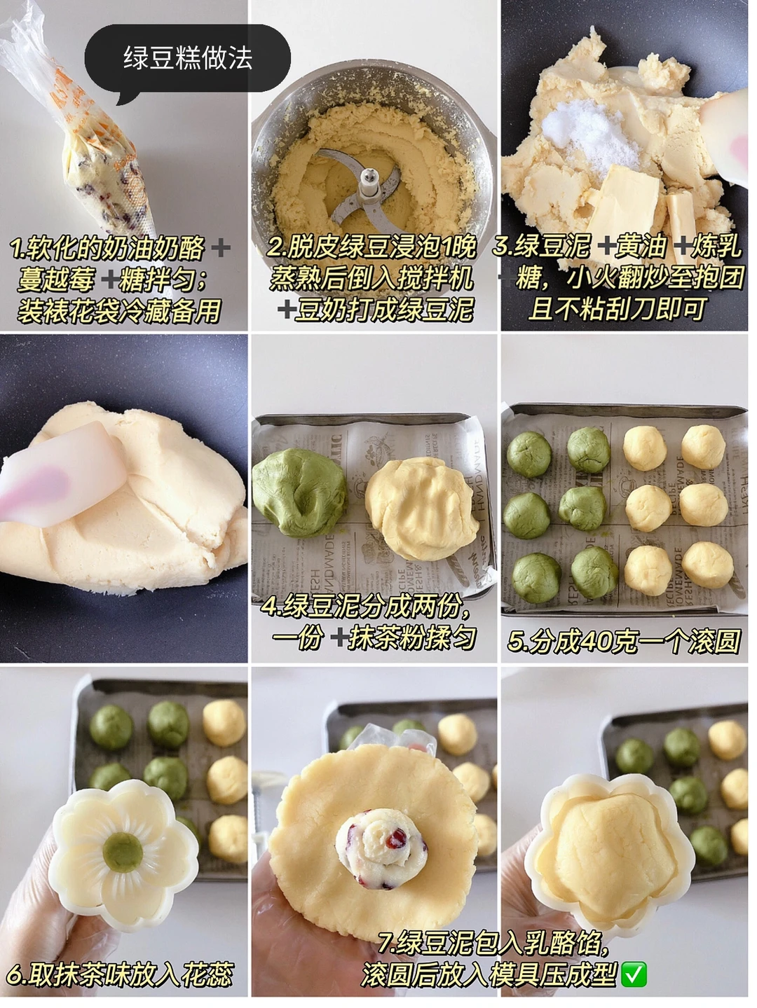 去皮绿豆 260g|豆奶或牛奶 200g|黄油 40g|糖 55g|炼乳 10g|抹茶粉 5g