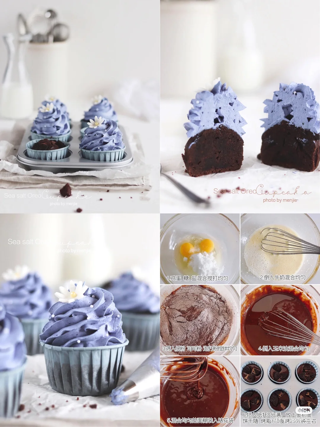 夹心奶油:淡奶油400g|糖30g|盐1.5g|蝶豆花粉5g|奥利奥碎20g