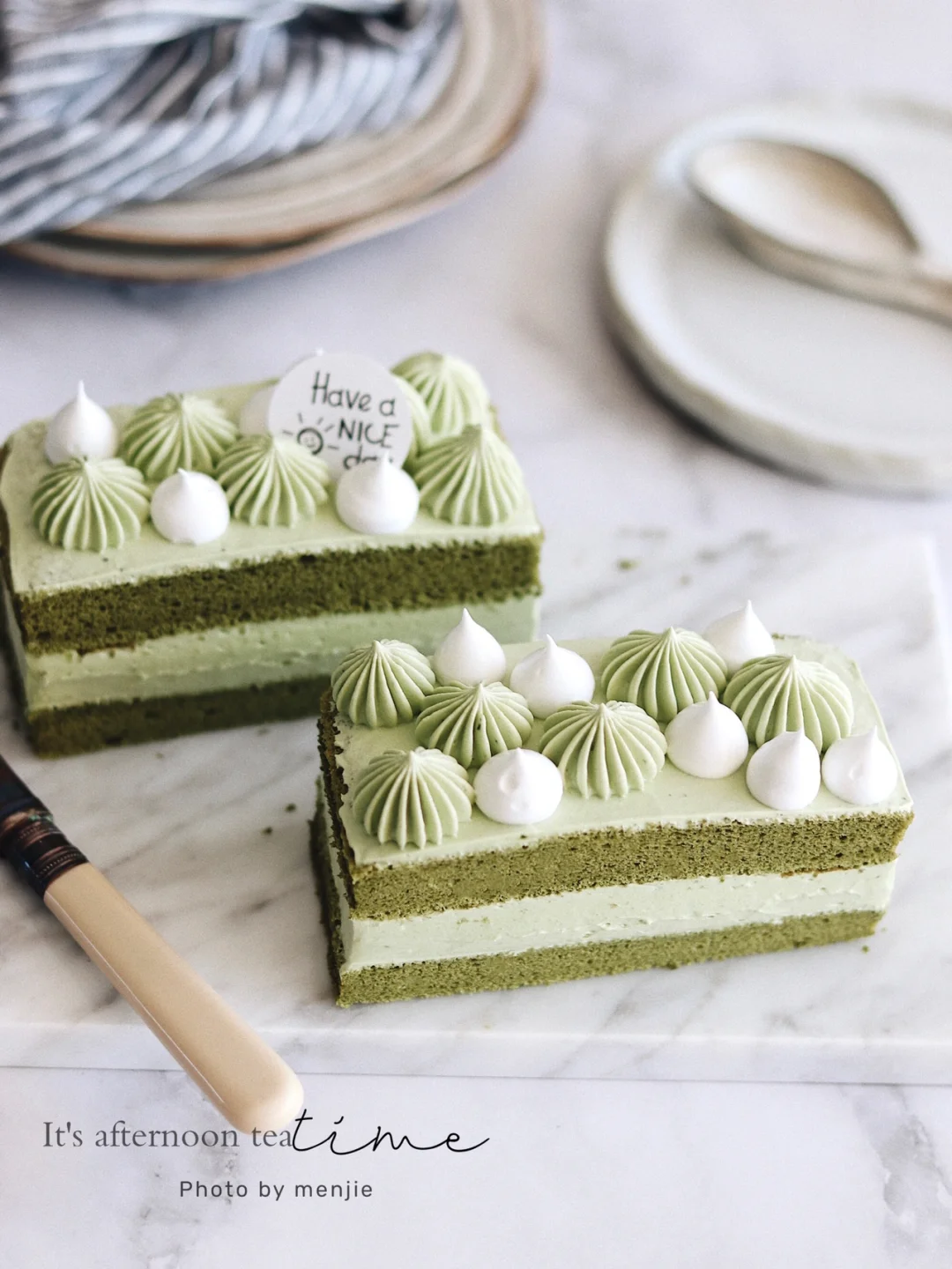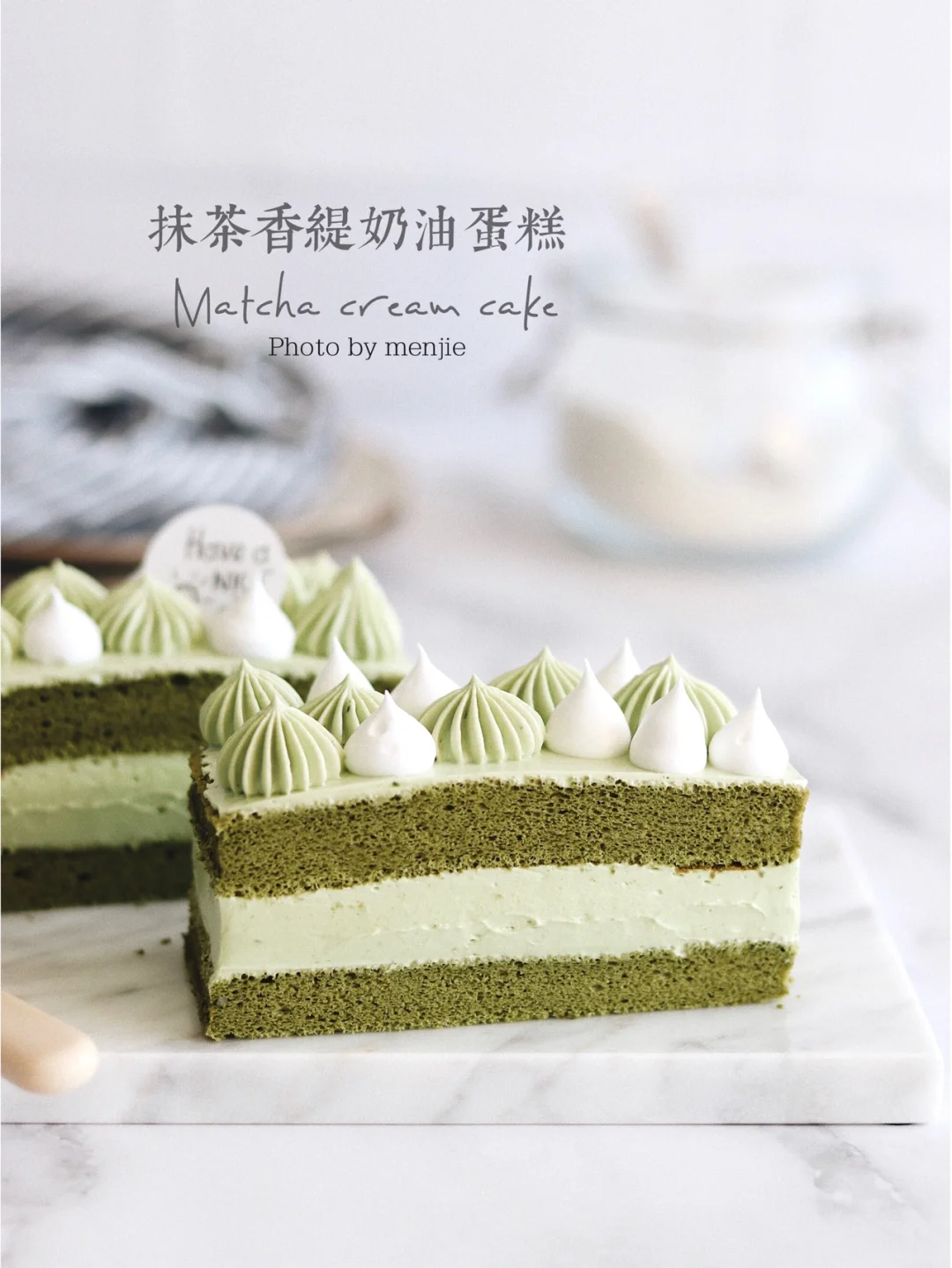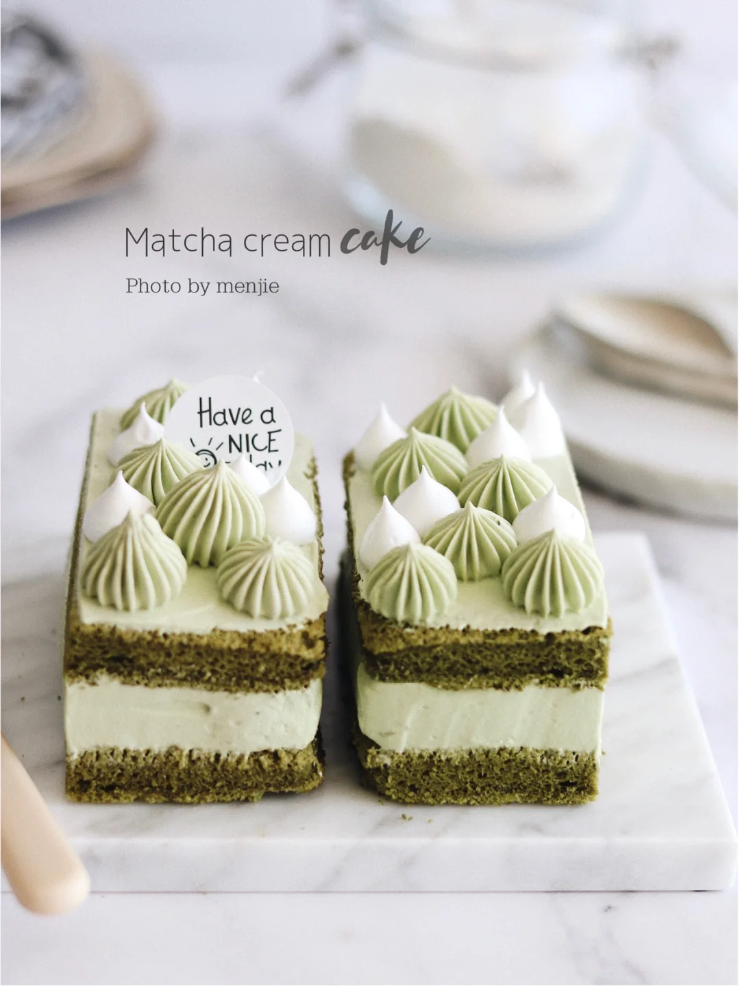绵软的蛋糕体搭配上冰淇淋口感的香缇奶油~真的是堪称一绝‼️还自带抹茶的清香,吃起来清新不腻[萌萌哒R]