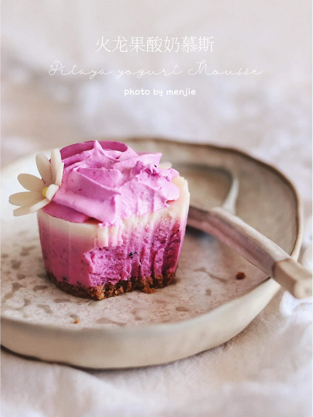 小伙伴们可以来get今天这款甜美又可爱的火龙果慕斯,小小的一个不仅方便携带,而且拍照也是美美哒[自拍R]