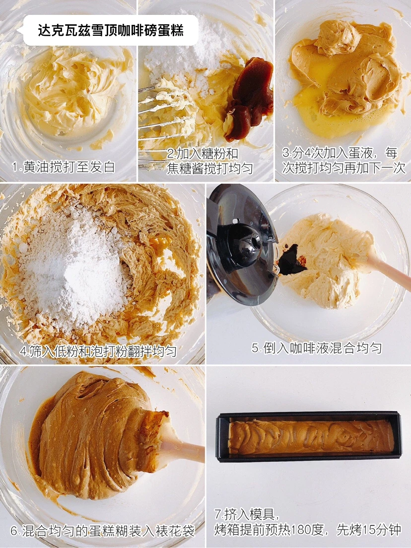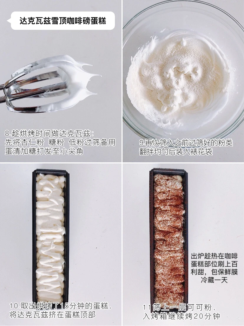 1️⃣达克瓦兹雪顶咖啡磅蛋糕(做法见图❺和❻)