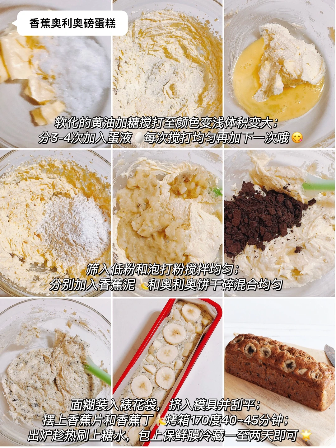 3️⃣香蕉奥利奥磅蛋糕(做法见图❽)