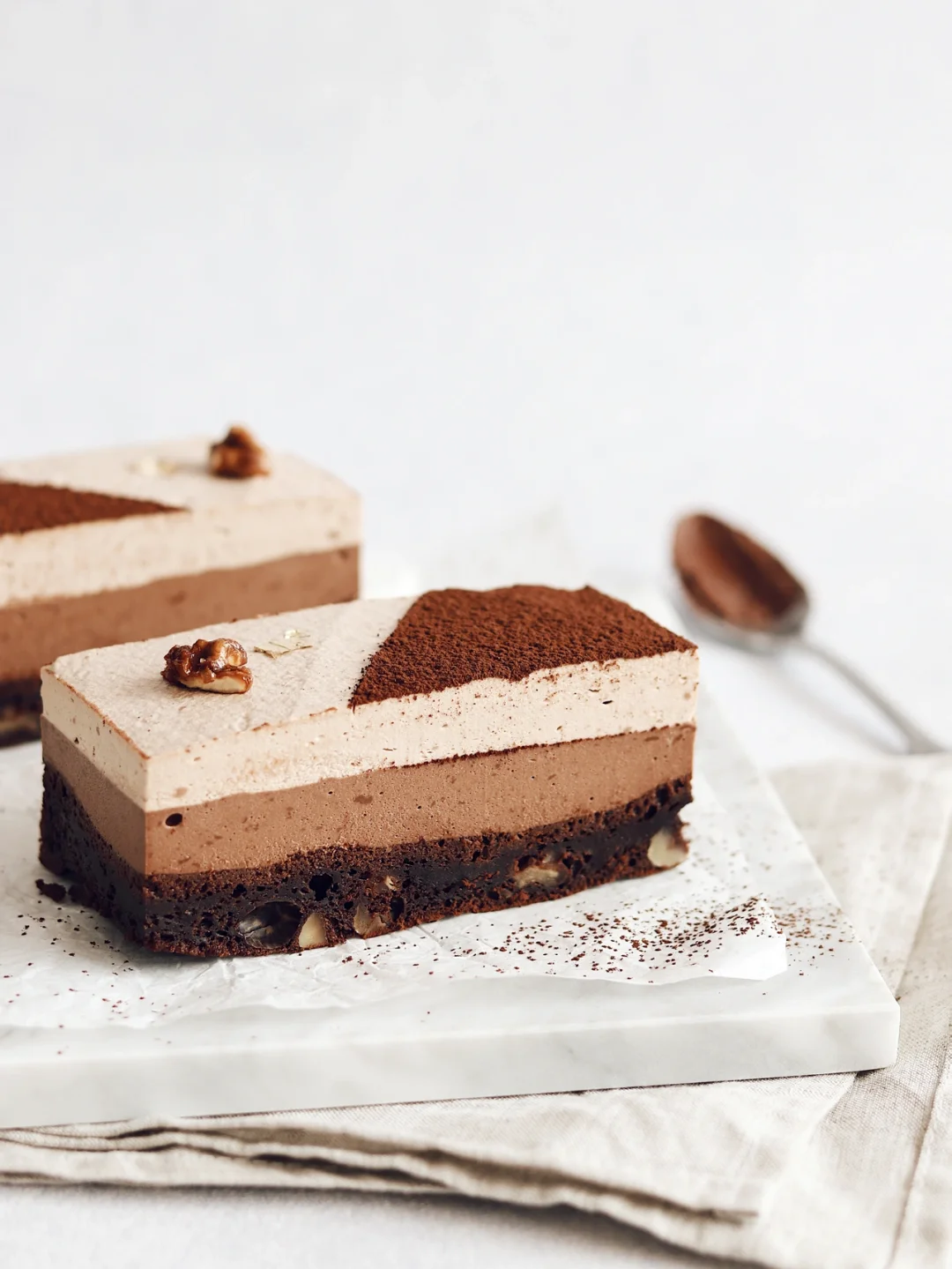 巧克力、咖啡、坚果相信很多小伙伴们都很爱吧😍把它们组合成一道甜品,真是可以撩动味蕾直击灵魂[抓狂R]口感上也是敲丰富哦[派对R]