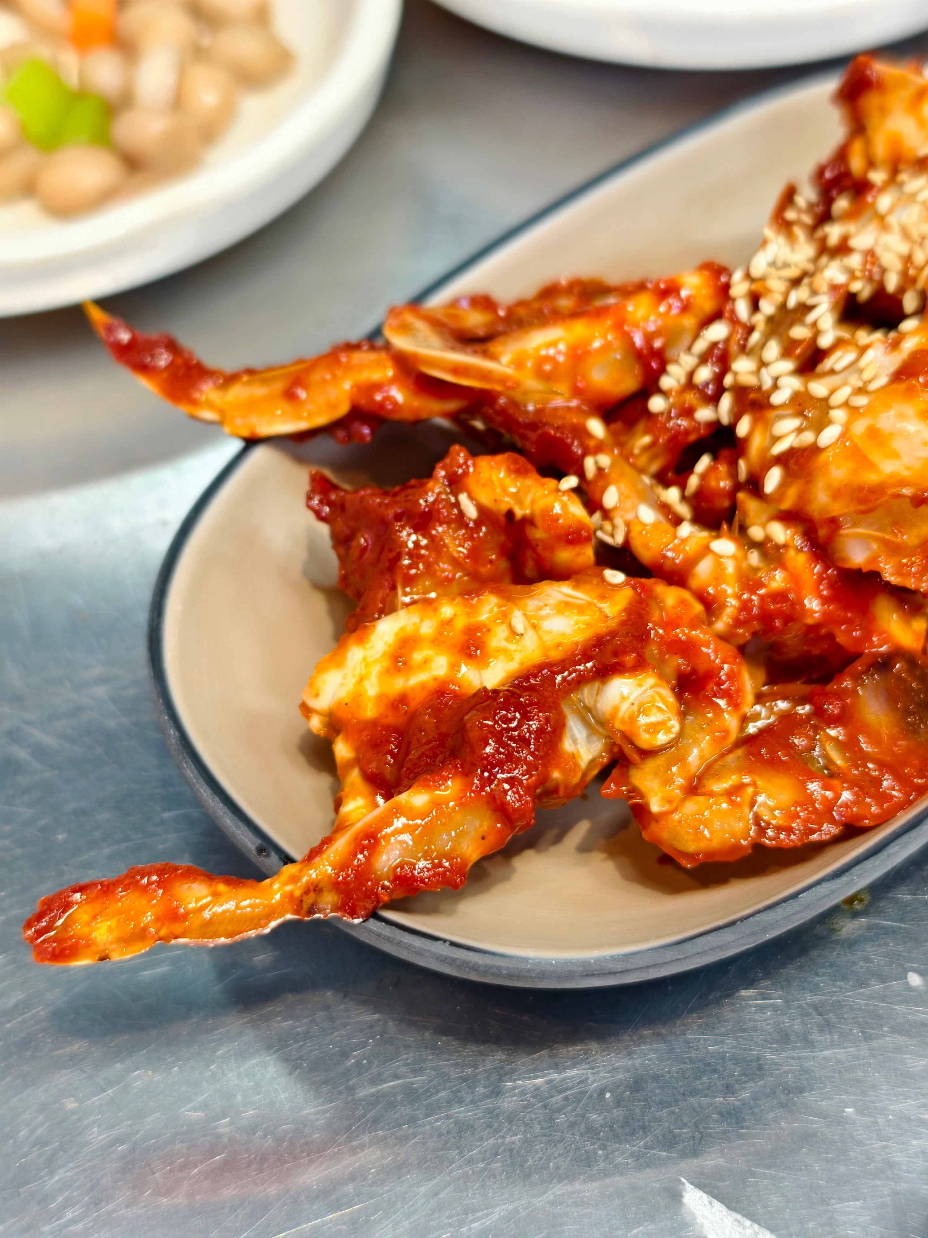 吃个特色菜,黄牛肥肠,老板说是延边特色菜。都是各种牛下货,有大肠、小肠、牛肝,牛肚,味道挺不错,很满足。店里总共就六张桌子,幸亏来得早,没排队。老板送了个酱蟹,挺不错,爱吃生腌的,应该会喜欢。