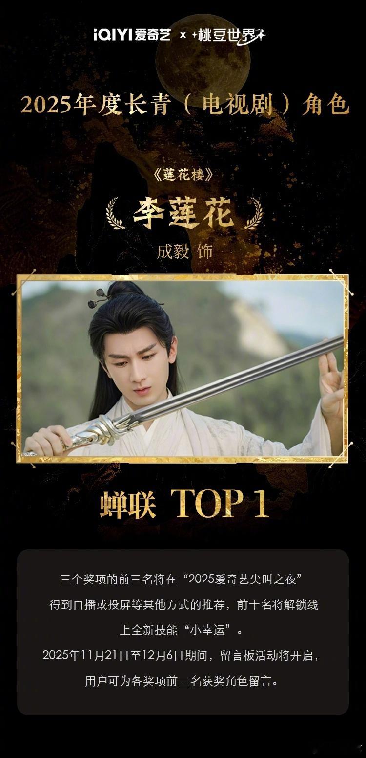 恭喜成毅王权富贵、李莲花!期待成毅更多优秀角色!