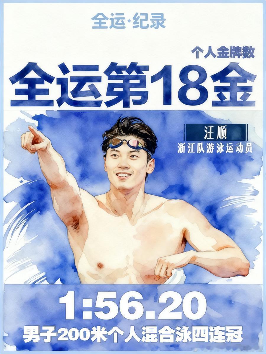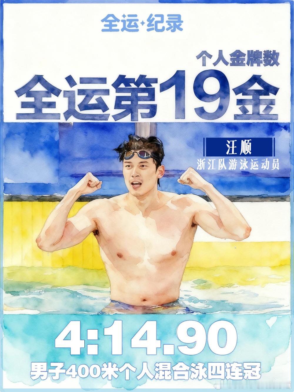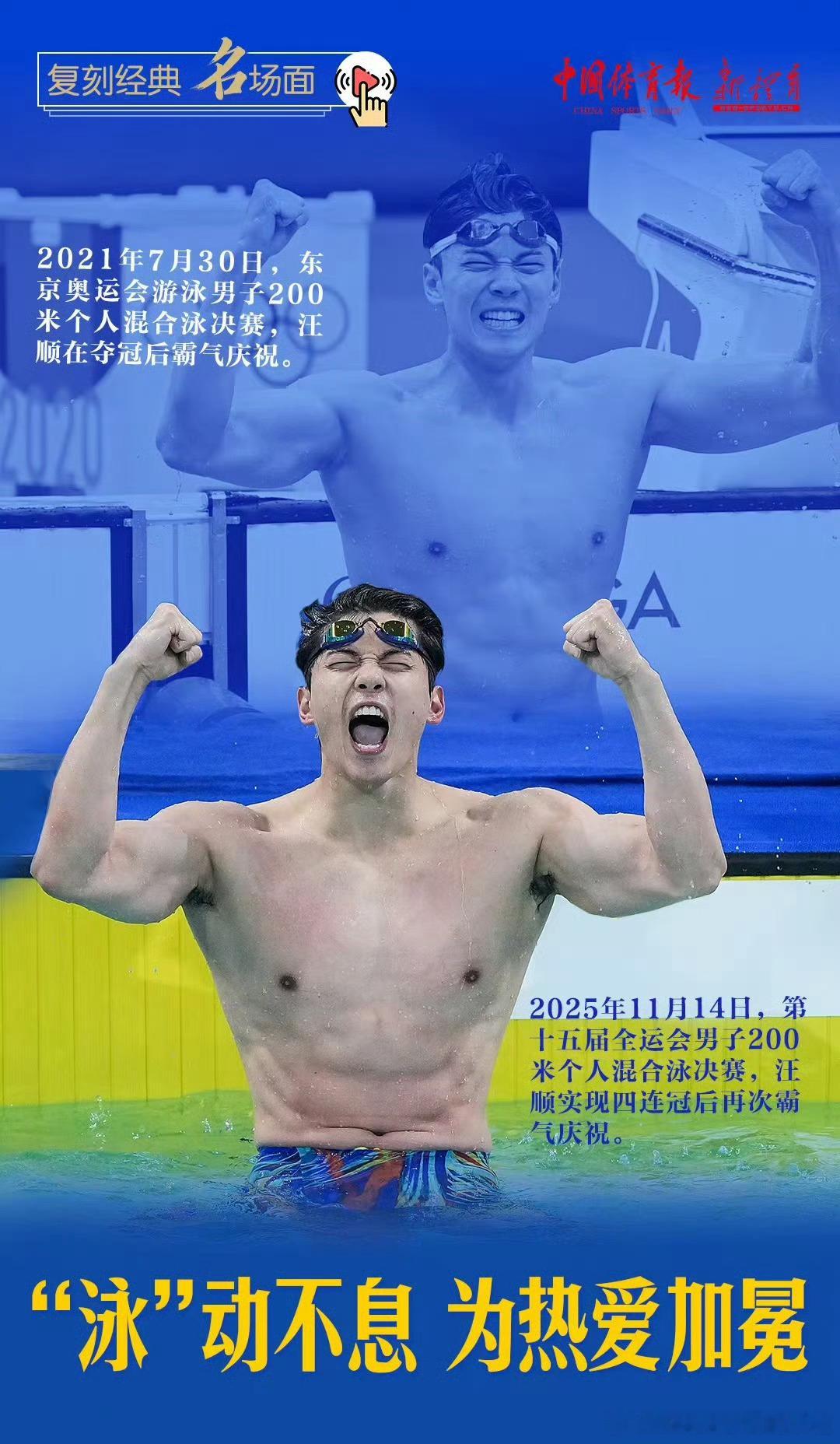 🏊🏻♂️——纪录是书写自己的传奇31岁老将汪顺 全运会“五朝元老”从初露锋芒的青涩少年成长为泳坛名将以19枚全运会金牌成为全运会夺金数量最多的运动员时间,从未战胜一颗冠军的心。 是结束 也是新的起点。“泳”动不息,为热爱加冕!图|新华社/新华网/央视新闻/中国体育报