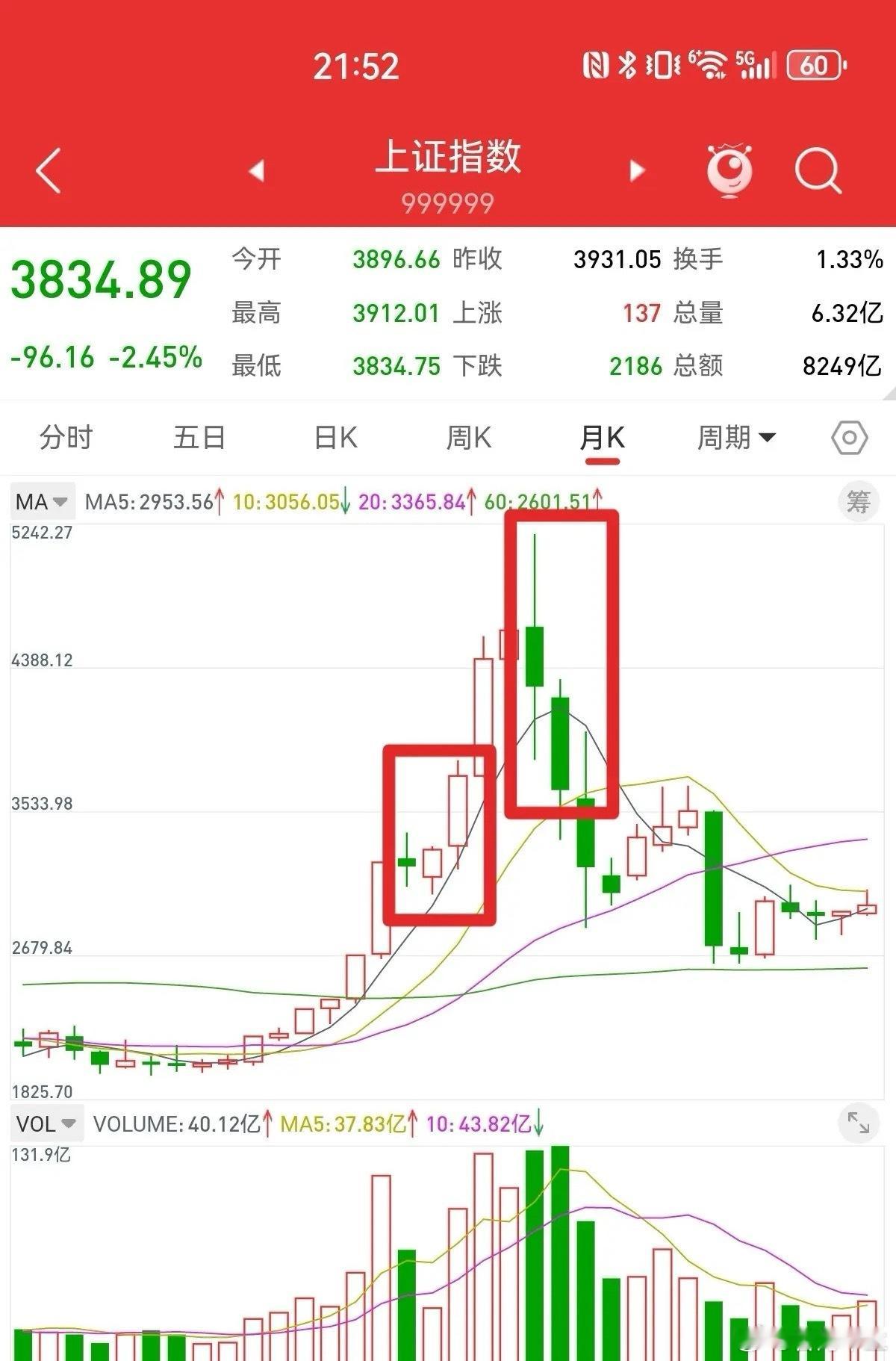 上证指数下跌96点,触及五月均线,下周会大幅上涨。回顾之前几次牛市,每次跌破五月均线,下跌的空间有限,都会大幅上涨。下周上证指数的跌幅在100点之内。三大指数大幅下跌,全部跌破六十日均线。很多人都说,六十日均线是牛熊分界线,这种观点是片面的。牛市的最重要的是五月均线,一旦有效跌破,上升趋势就会发生逆转。2014年牛市,历时十二个月,两次跌破五月均线。第一次跌破五月均线,下探39点,就止跌反弹了。第二次跌破五月均线,下探230点,上升趋势逆转,牛市行情结束。2014年牛市,与本轮牛市,有很多相似之处。与上一轮牛市,都是间隔十年,都是从3000点开始,都是沿五月均线稳步攀升。第一次跌破五月均线,下探的空间,也不会太大。上证指数收盘3834点,五月均线在3820点,二者相差14点。下周如果跌破五月均线,再下探50点,跌幅也在100点之内。短暂跌破五月均线,上证指数就会大幅上涨,重回上升趋势。下周上证指数跌幅在100点之内,重回五月均线之上,牛市就还会延续。如果下跌的幅度过大,长时间无法站回五月均线,就要大幅减仓,牛市行情可能发生逆转。我坚定看多,下周上证指数小幅下跌,之后大幅反弹的概率很高。牛市最少还有五个月,涨幅1000点。上证指数第一次跌破五月均线之后,还会大幅上涨。祝各位下周好运!