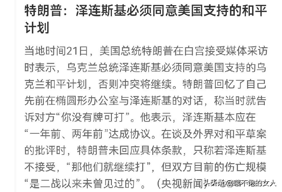 细心一想,鹰酱在急着下一盘大棋啊,现在为什么要逼迫泽连斯基在27日之前同意俄乌停火。 我们放开想象,看看现在的小本子心急火燎的是不是在干一些不正常的事? 我在想,鹰酱急着让俄乌停火,一方面是拉拢大鹅,利用大鹅的资源,也是看到大鹅被消耗的差不多了,停火以后鹰酱就可以不用把过多的军事精力用在大鹅和乌克兰身上。 这样就可以腾出更多的时间来怂恿小本子,让小本子来挑事惹火东大,这样另一场热战就开始了,可以联合起来消耗东大,就好比消耗大鹅一样。你们说有可能吗?[捂脸]