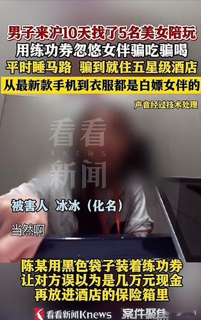 上海,一小伙十天内连续约了5名女子约会开房,匪夷所思的是,小伙竟然一分钱都没花,都是约会的女子付的款。几天的时间,让这5名女子付出了5万元。最终,小伙还是栽了。 主角陈某,30岁出头,没啥收入,但“面子要撑起来”,这种人你肯定见过:穿着淘宝“XX同款”、天天喊兄弟你不懂、出去吃饭动不动讲投项目、喝奶茶都要拍照发朋友圈配“累死了又谈了一个亿”…… 但陈某比一般人“更离谱”—— 他刷短视频时看到游戏里的“练功券”,因为特效太华丽,一时“眼花”,觉得特别像一沓一沓崭新的现金,竟然动了歪脑筋: 于是,他真的在网上买了好几大捆练功券。 一开始还偷偷摸摸藏抽屉,后来越看越上头,越想越兴奋: “我这不是有钱人吗?还怕谁不信?” 于是,他开始行动了——目标是那些在社交平台上写着“找成功男士”“喜欢成熟有实力的男生”的女性。 接下来发生的事,让网友直呼:离谱到艺术。 他约会的流程可谓“精心设计”: 出门前塞一沓练功券在裤兜里,露个边,让人误以为是现金 点饭点酒全程大手一挥:“先上!” 女方要扫码付款时,他就摆出“我不带手机/我忘记微信密码/我银行卡限额”的老套理由 但练功券露出来的时候,配合他的自信语气,竟然让不少人信了! 于是——五名女子在十天内替他付了酒店、饭钱、购物、喝酒等各种费用,加起来5万元! 网友看到这里都惊呆了: “???我用真钞约会都没这么受欢迎,他拿练功券都五连杀了?” “这不是骗钱,这是玄学。” “见过装的,没见装得这么抽象的。” 转折点发生在刘女士身上 刘女士生活压力比较大,刚好要交房租,于是约会时看陈某带了一包现金。 她准备把房租先付掉,随手把陈某装钱的袋子放在桌上。 这一幕让陈某的脸色变了变。 刘女士没注意,以为他只是尴尬。 结果下一秒——陈某突然起身,打开门,直接走了! 连回头都没有。 刘女士懵了三秒:“这人……脑子没事吧?” 直到她打开袋子想确认钱的时候——她整个人直接石化。 一袋子的练功券。 刘女士差点没当场原地去世。 她立刻报警。 事件上网之后,评论区直接狂欢:“他不是诈骗,他是抽象艺术家。” 这简直是把贫穷和虚荣玩出花了。 “这五个女生也得反省一下吧,拜富拜得太急了。” 这一点引起很多讨论:“为什么愿意替陌生男人花五万?” 不少网友说: “看似‘拜富’,其实是社交风险意识太弱了。” “要警惕那些‘太会装’的男人。” “他是真有天赋,要不考虑出道演戏?” 许多人觉得陈某的演技简直稳到离谱:“能用毫无价值的纸条成功扮演富豪十天,这剧本我不写都对不起他。”