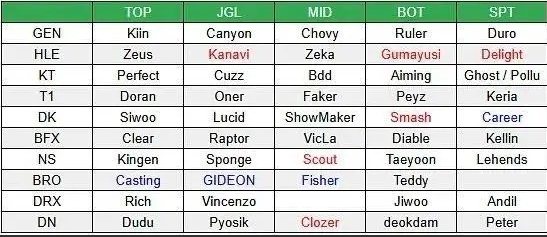 直播吧11月22日讯从目前官宣以及爆料的阵容来看,明年LCK各队伍明星选手以及新秀等选手云集,竞争或更加激烈。