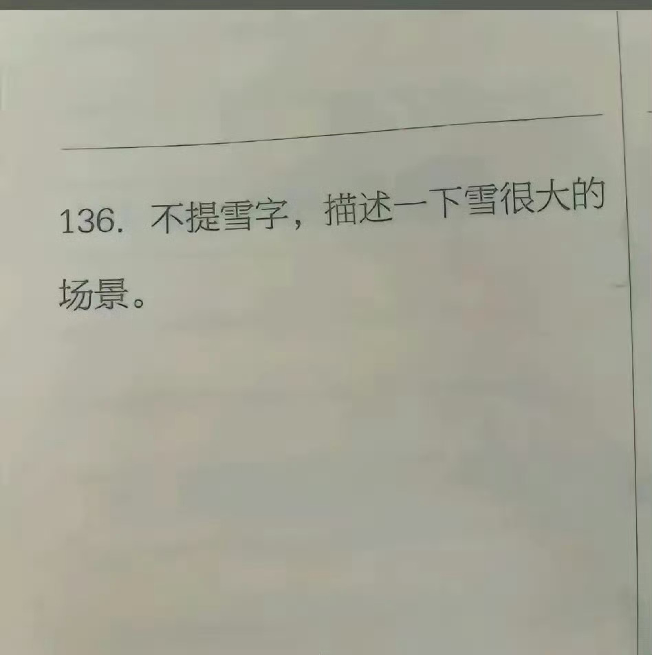有没有真正的高手!!!不提雪字,大概描绘一下雪很大的场景!