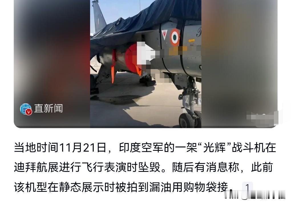 印度飞机表演竟然失事了,飞行员都来没来得及逃生。 这真的是太不靠谱了。 值得一提的是,几天前刚被拍到漏油用塑料袋接。 那个时候就应该引起重视。 没想到表演的时候出事了。 这真是敲响了警钟,防不胜防。