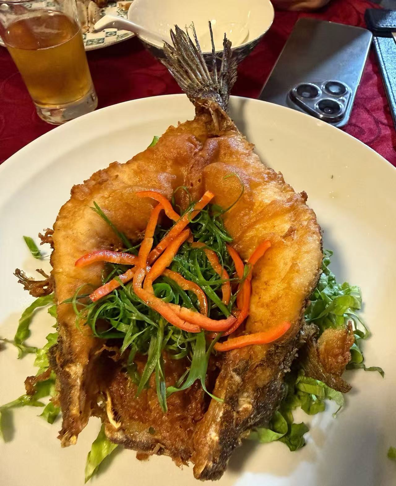 3️⃣.油浸笋壳鱼,外壳酥到掉渣,鱼肉雪白细嫩,蘸泰式酸辣汁解腻。
