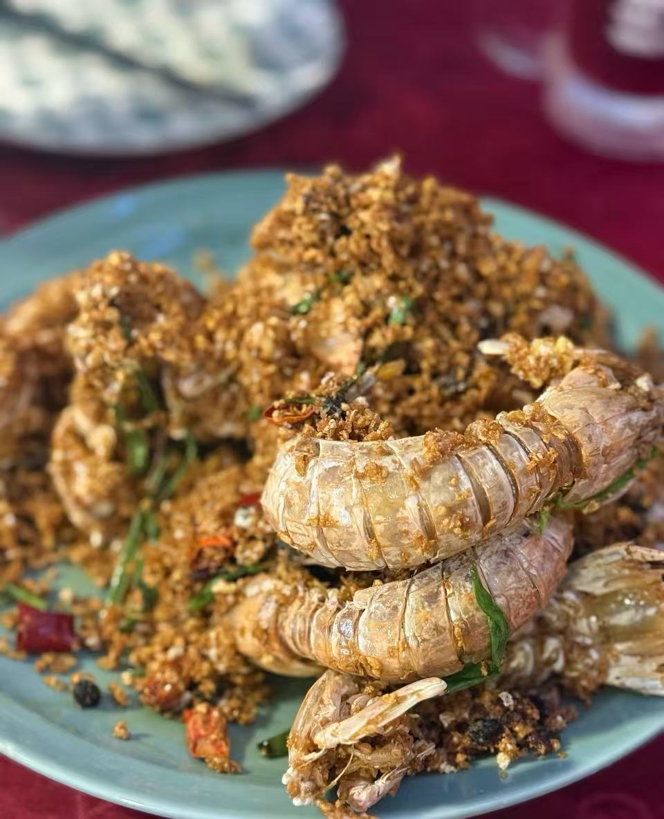 4️⃣.椒盐濑尿虾,虾壳炸至酥脆,虾肉鲜嫩多汁,招牌菜品之一。