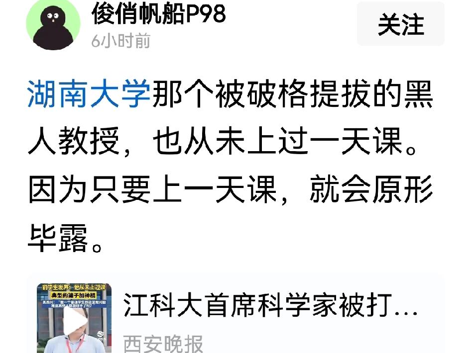 如果是真的,那湖南大学聘请一个黑人教授又是为了啥呢?有网友爆料,湖南大学重金聘请