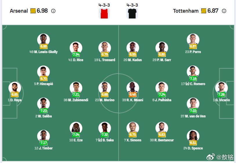 阿森纳有什么明显的软肋吗?从阵容来看是没有的,无论是一阵还是二阵。但战术上有。进攻和防守各一个。进攻,阿尔特塔过于谨慎,他强调控制球权,尽可能减少回合数,在一种稳健的控球过程中寻找机会,如果没有好机会就回传,重新组织。这种踢法,遇到后腰强硬、后卫能力比较强的热刺,打不进去了。防守,参考对阵桑德兰丢的两个球,那就是害怕对手45度炸。无论是争抢一点球还是二点球,面对这种轰炸,阿森纳的后卫处理得就不够从容了。加布里埃尔伤缺,制空点又少了一个。但是,热刺能打击阿森纳的弱点吗?答案是不能。如果弗兰克安排西蒙斯出场,那就更不能了。前场人员能力有欠缺是一个硬伤。除非弗兰克想明白了,让库杜斯带着轻伤出场,约翰逊左路,两个边锋,再加上波罗、斯宾塞或者乌多吉插上来,频繁起球,就让理查利松去冲一点,萨尔、帕利尼亚捕捉二点球。如果这场北伦敦德比热刺主打传中,尤其是高空球,那阿森纳确实有点危险。