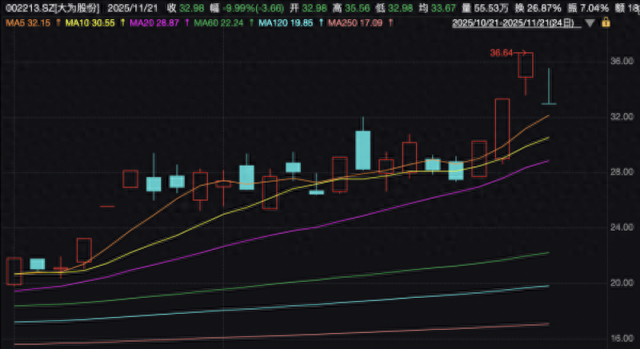 近期,大为股份在资本市场表现引人瞩目。据统计,近一个月内(2025年10月22日至11月21日),该公司股价累计涨幅达51.01%,远超市场平均水平。本轮行情中,该股出现多轮非连续涨停,先后于10月27日至28日、11月18日至20日收获两连板与三连板,市场情绪持续高涨。不过在11月21日,其股价触及跌停,显示出由情绪与资金博弈推动的波动特征。