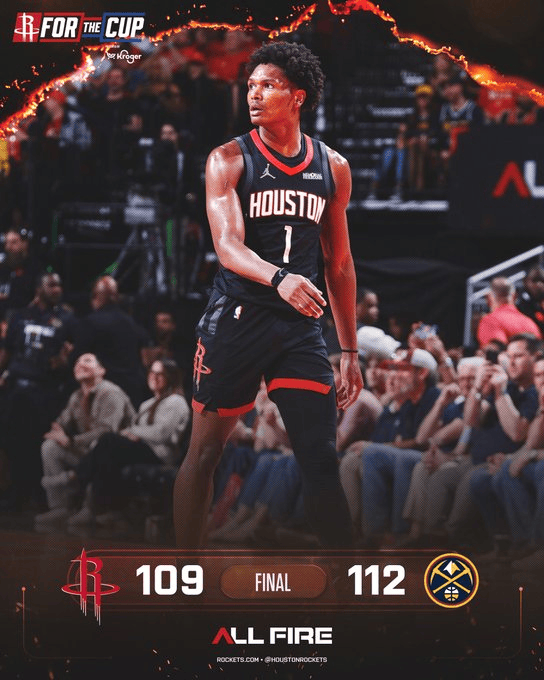 火箭官方发布全场比分海报:五连胜惨遭终结,战绩10胜4负