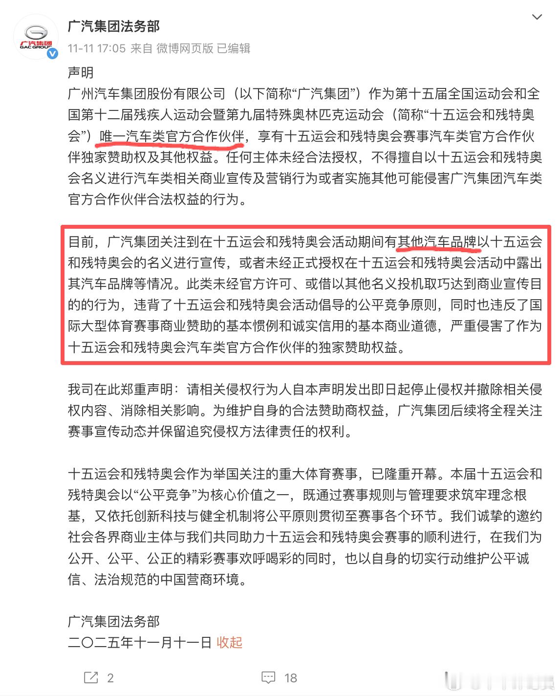 新能源圈的无底线蹭流量天花板,非比亚迪莫属🤯广汽掏真金白银拿下本届全运会“汽车类唯一赞助”,相当于包下了整场活动的汽车露脸权,结果深圳站直接被比亚迪截胡——腾势老总当火炬手(这没问题),身后硬是跟了台腾势D9硬蹭入镜(这对吗?),还营销自己是领航车刷存在感(这还要lian吗?)何小鹏也是火炬手,人家从头到尾没让自家车露过面,不是没车可晒,是人家懂分寸守规矩,是自己的可以大肆营销,不是自己的碰都不碰。有人洗“比亚迪纳税多,露个脸咋了”?那纳税多是不是能随便闯红绿灯?广汽、小鹏纳税也不少,人家咋就守规矩?最气的是,广汽发了律师函逼腾势删了宣传,结果全运会闭幕式上,比亚迪又把车开进去蹭了!。。。666 这是把规则当空气啊!广汽不再发个律师函吗? 组委会对这种侵权行为漠视不管吗?