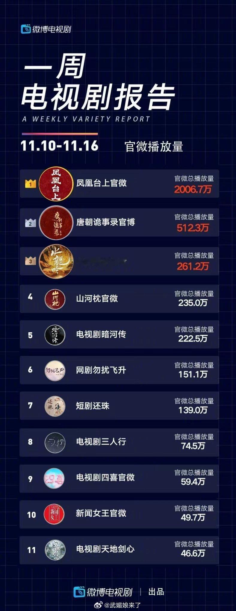 《凤凰台上》制作团队真该感谢任嘉伦!在热搜最高仅44位、几乎没有营销助推的情况下,凭借任嘉伦的个人号召力,话题阅读量达1.6亿,官微播放量断层第一,是第二名的四倍。任嘉伦以超强扛剧能力实现“人抬剧”,低投入高回报,不愧为五爆长红的扛剧生!