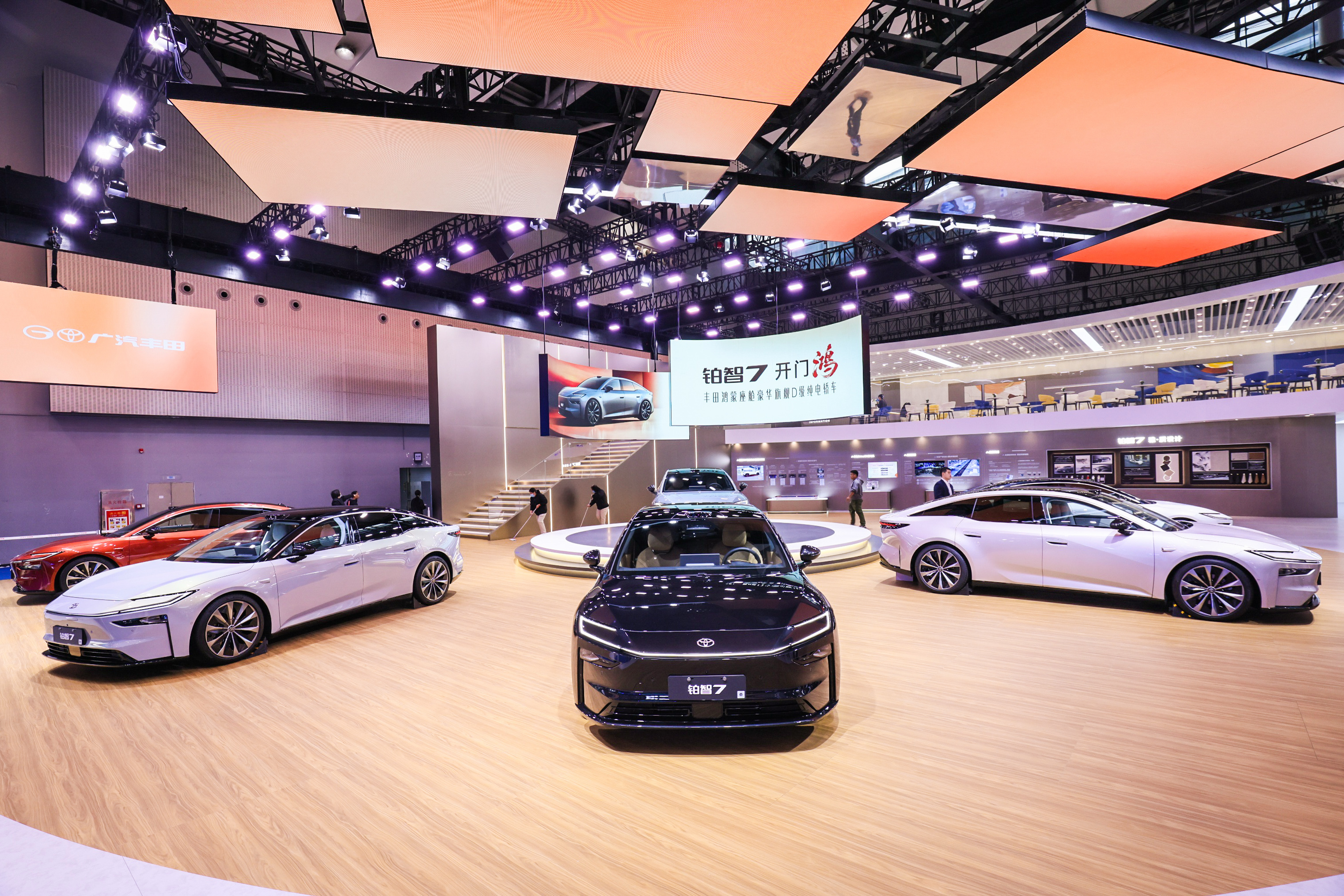 建议广丰还是重点营销一下铂智7的内饰吧,因为新凯美瑞和新雷凌等车型已经换了这个新脸了,外观给人的感觉中规中矩没啥惊喜。但铂智7的内饰非常夸张,超大面积的软包和暖色的配色,直逼很多30万级新势力的设计。再去展台隔壁,看看不管是全新威兰达,还是曾经很贵的新汉兰达的内饰,给人一种“这还是那个爱用塑料的丰田吗”的震撼。