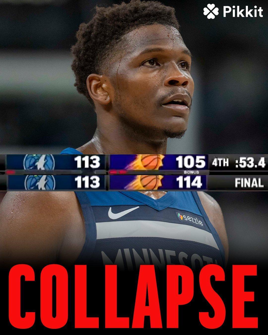 最后1分钟领先8分被逆转,森林狼这是玩啥? NBA杯,吉莱斯皮化身纳什,命中关键中距离完成准绝杀。随后,兰德尔超远三分不中,太阳队以114-113战胜森林狼。 此前,太阳队面对森林狼已经8连败了。有杜兰特、布克、比尔的太阳队赢不了森林狼,今天,只有布克,且布克全场被夹击,太阳队反倒是战胜了森林狼。 不过,这场比赛,森林狼最后时刻打得着实有些莫名其妙。 比赛还剩1分09秒的时候,迪文琴佐2罚全中,森林狼113-105领先太阳队8分。这种情况下,森林狼的赢球的希望不说100%,也差不多95%了。 接下来,狄龙强投三分不中,但森林狼队没有保护好后场篮板,罗伊斯-奥尼尔抢下前场篮板二次进攻命中,113-107。 回过头来,森林狼就发球失误送礼,狄龙抢断,古德温直接命中三分,113-110,还剩40秒钟。 兰德尔突破,被古德温抢断,古德温一条龙反击命中,113-112,时间还足够。 森林狼后场发球,又被奥尼尔抢断,好在丹尼尔斯帽下了奥尼尔。 还剩12.7秒的时候,华子站上罚球线,轮到华子玩了,2罚全铁。 随后,就是吉莱斯皮的英雄时刻,后仰跳投命中,113-114,森林狼没有暂停,兰德尔超远三分打铁,太阳队逆转森林狼。 比赛最后1分钟,森林狼犯了如此多的错误:后场篮板没保住,失误3次,华子罚球2罚全铁。 要说但凡少失误1次,或者华子2罚中1,这场比赛,森林狼都不一定会输。 怪不得很多球迷说这场比赛假,以及NBA越来越假。