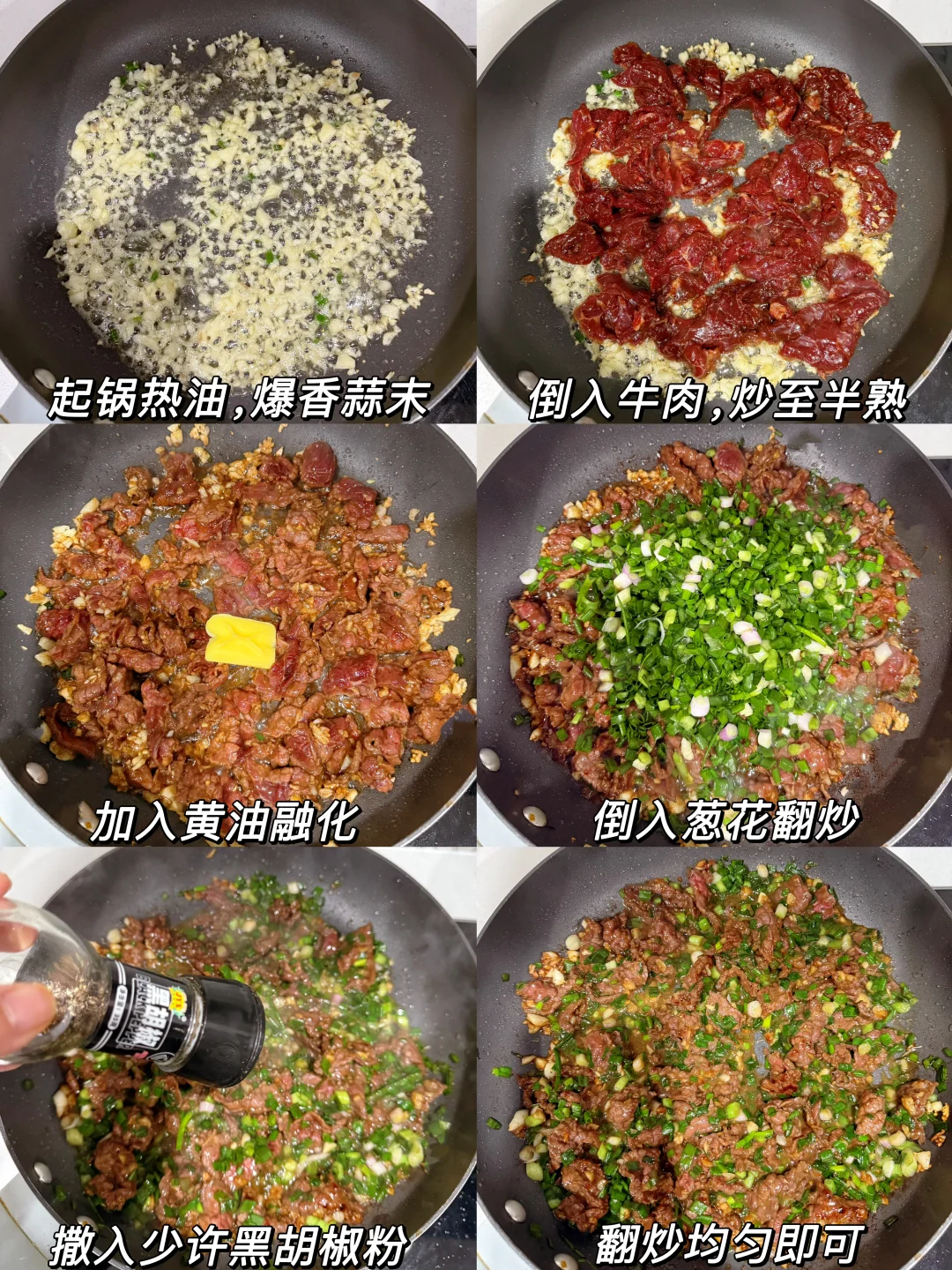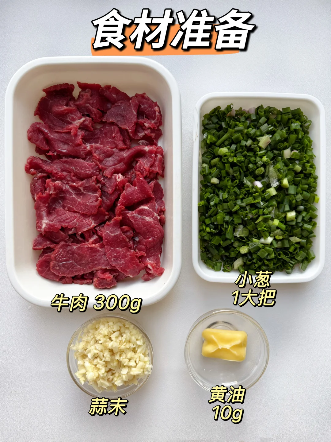 📝【食材】:牛肉、小葱、蒜末、黄油