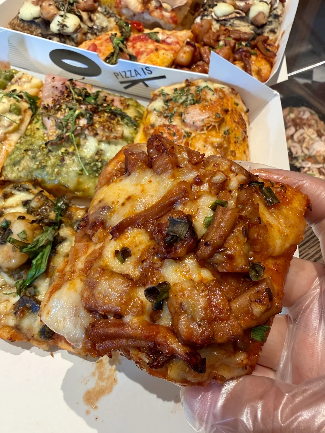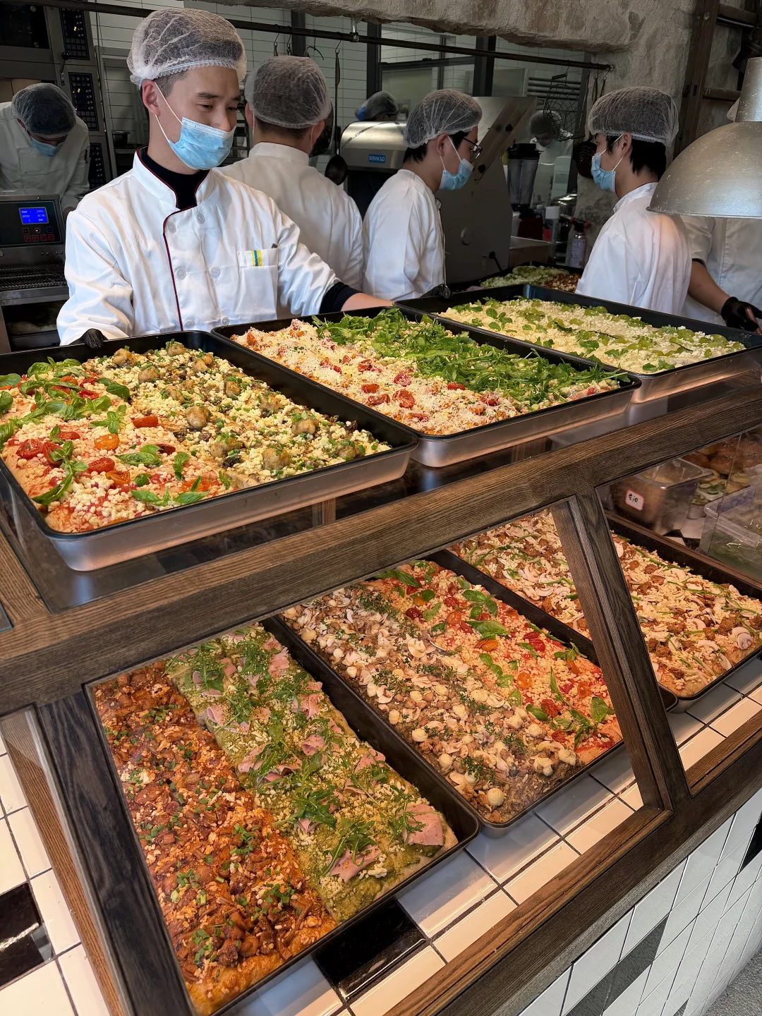 大悦城新开的OKEY BAKERY!有种南法乡村农场的即视感!必须安利给所有在成都的人!!! 第一个必吃的是他的方块罗马披萨🍕!可以4拼/6拼,选好自己喜欢的味道,拼好再现烤的!(番茄肉酱和烧椒皮蛋的好吃!) 然后是甜品柜,真的没有抵抗力!选了几款蓝莓的,不是那种甜腻的,吃得出来用料很好很新鲜!还有各种欧包、日式面包,下次一定试试它的恰巴塔(在北京很火🔥!!)