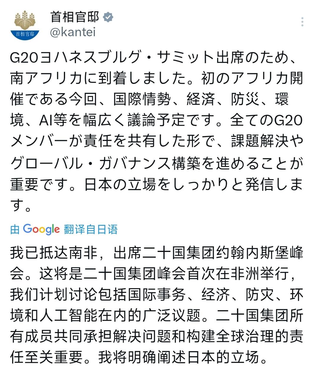 11月22日下午,日本首相高市早苗已经抵达了南非,准备出席即将举行的20国集团峰会。那么在这一次的峰会之上,围绕日本有哪些看点值得关注呢? 第一就是中日之间会有什么样的互动或者是博弈。一方面,中日会不会以某种形式进行非正式的接触或者互动?另一方面,如果双方毫无接触的话,中日会不会在大会上对彼此进行指名道姓的批评和谴责。 第二就是日本会不会争取到其他盟友表达对自己的支持?目前看起来,高市早苗应该会重点和印度总理莫迪以及欧洲国家的代表见面,需要关注的是,这些国家是否会力挺高市在台湾问题上的表述,并且共同反对在台海问题上单方面改变现状的行为? 第三,就是在这一次的合照和座位安排问题。由于美国没有代表出席,再加上日本8月份刚刚举办过日非的领导人峰会,中日与非洲尤其是南非的经贸关系都非常紧密。因此似乎存在一种可能性,那就是中日恰好站在南非总统拉马福萨的两边。不排除南非想扮演和事佬的角色,推动双方的非正式接触。 最后就是,日本是否会争夺20国集团主导权的问题。目前来看,美国已经意兴阑珊,欧洲的能力也不足,中国似乎更加关注金砖机制,因此日本似乎把20国集团当成了一个自己可以占主导地位的国际合作平台。高市早苗有可能在这次峰会上,会提出更多日本的倡议,发挥日本的领导作用。