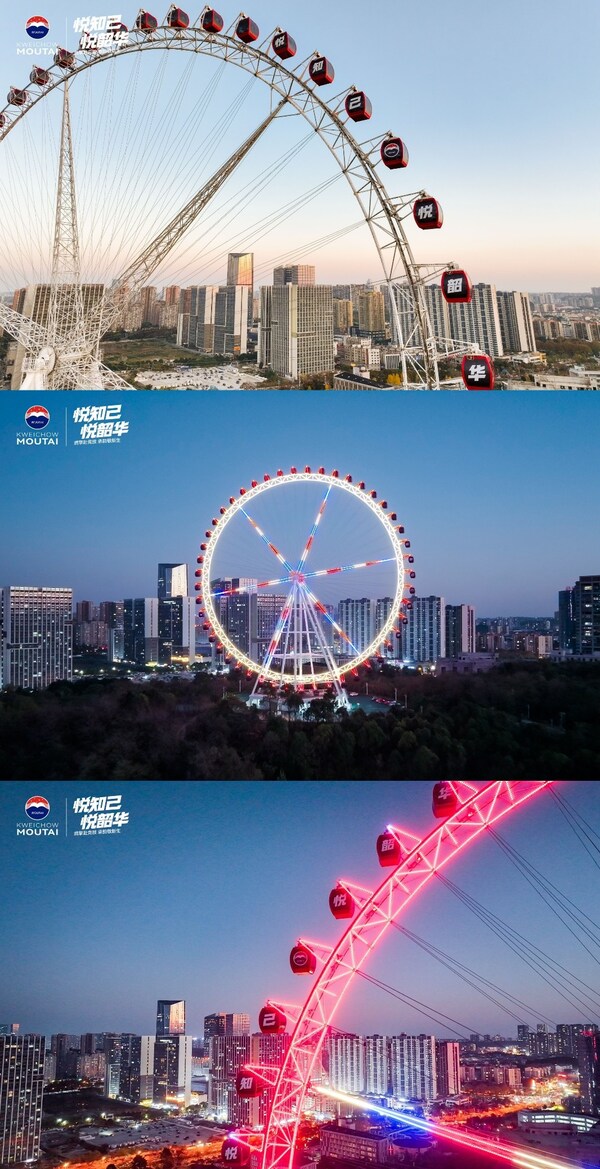 活动现场以茅台经典红白为主视觉,凝练"韶华"主题意象,打造兼具奢雅格调与潮流张力的品牌体验空间。四辆全车定制贴膜赛车成为绝对视觉焦点——两辆丰田GR86Super与两辆小米SU7Ultra,将茅台经典Logo与品牌图腾无缝融合,让百年酱香符号与极速竞技载体碰撞出震撼跨界美学;夜幕降临,摩天轮点亮红、白、蓝三色灯光,"悦知己悦韶华"主题字样格外亮眼,与赛车遥相呼应,为这场"速度与激情"的盛会铺就潮流底色。