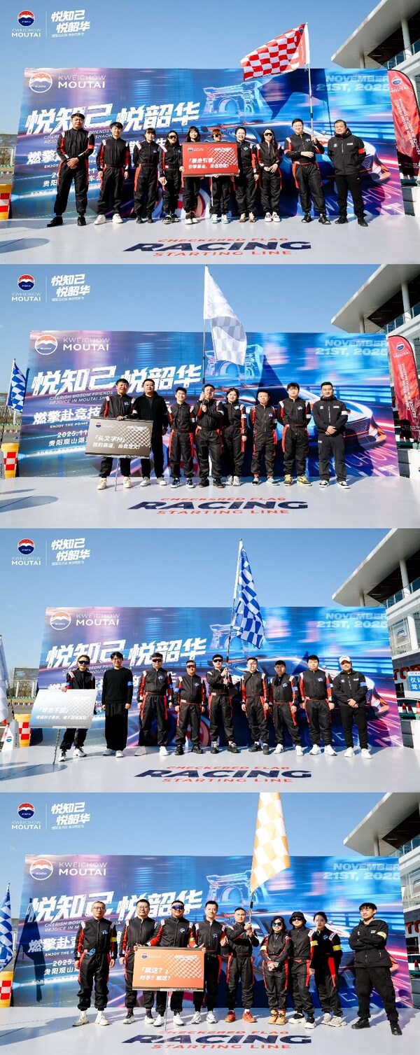 本次活动以"抽签跨界组队"颠覆传统模式,来自贵州、山西等地的茅台传承人携手赛车手、跨界嘉宾,组建红队"暴走引擎"、灰队"头文字M"、蓝队"专治不服"、黄队"就这?"四色传承战队,加之专属茅台队,共五大战队同台竞技。各战队以破圈队名彰显态度,用"燃擎不止,传承不息""赛道争锋,茅台必胜"等铿锵口号凝聚力量,在专业赛道上上演了一场速度与信念的巅峰对决。