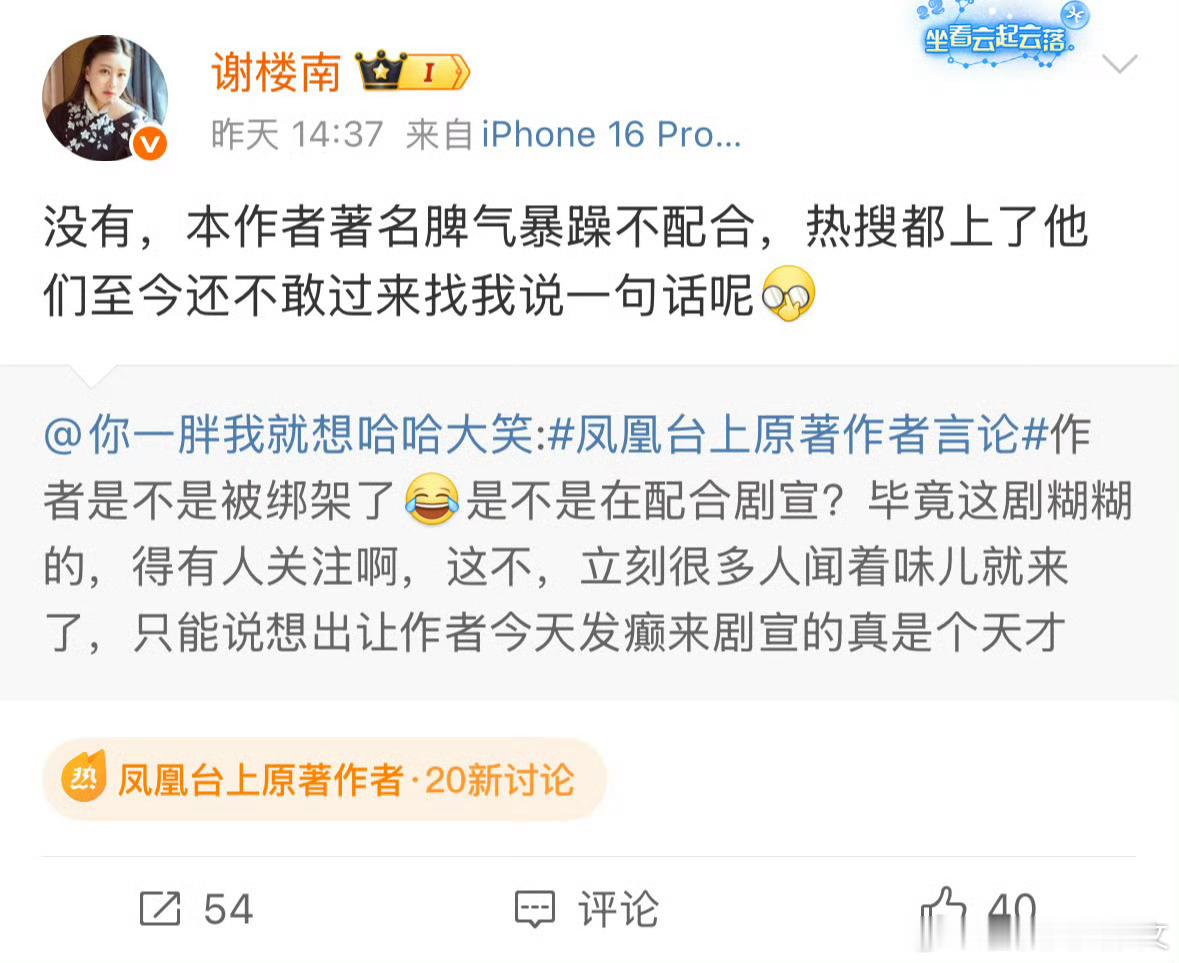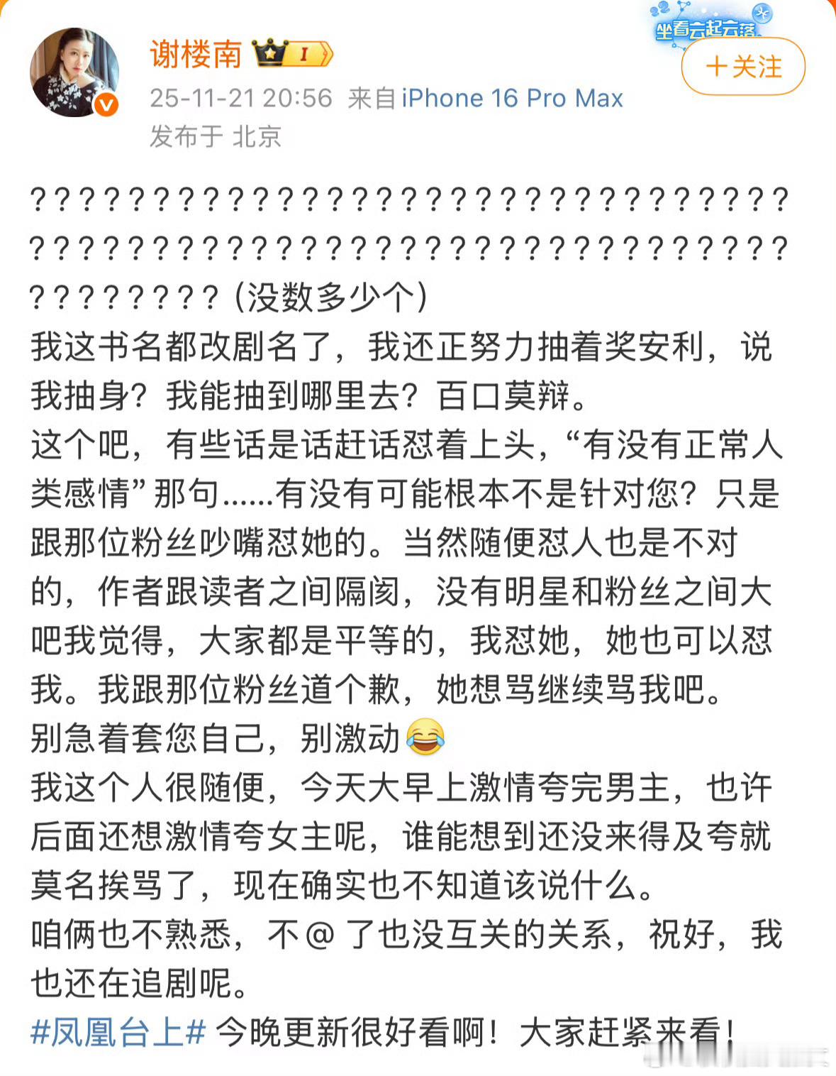 《凤凰台上》虽然播出数据不尽人意,但还轮不到原作者出来对主演说三道四博热度吧⁉️