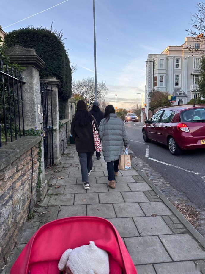 沙溢胡可英国被偶遇,他俩穿得都挺休闲,胡可背着那个花袋子还挺可爱,沙溢裹着厚外套