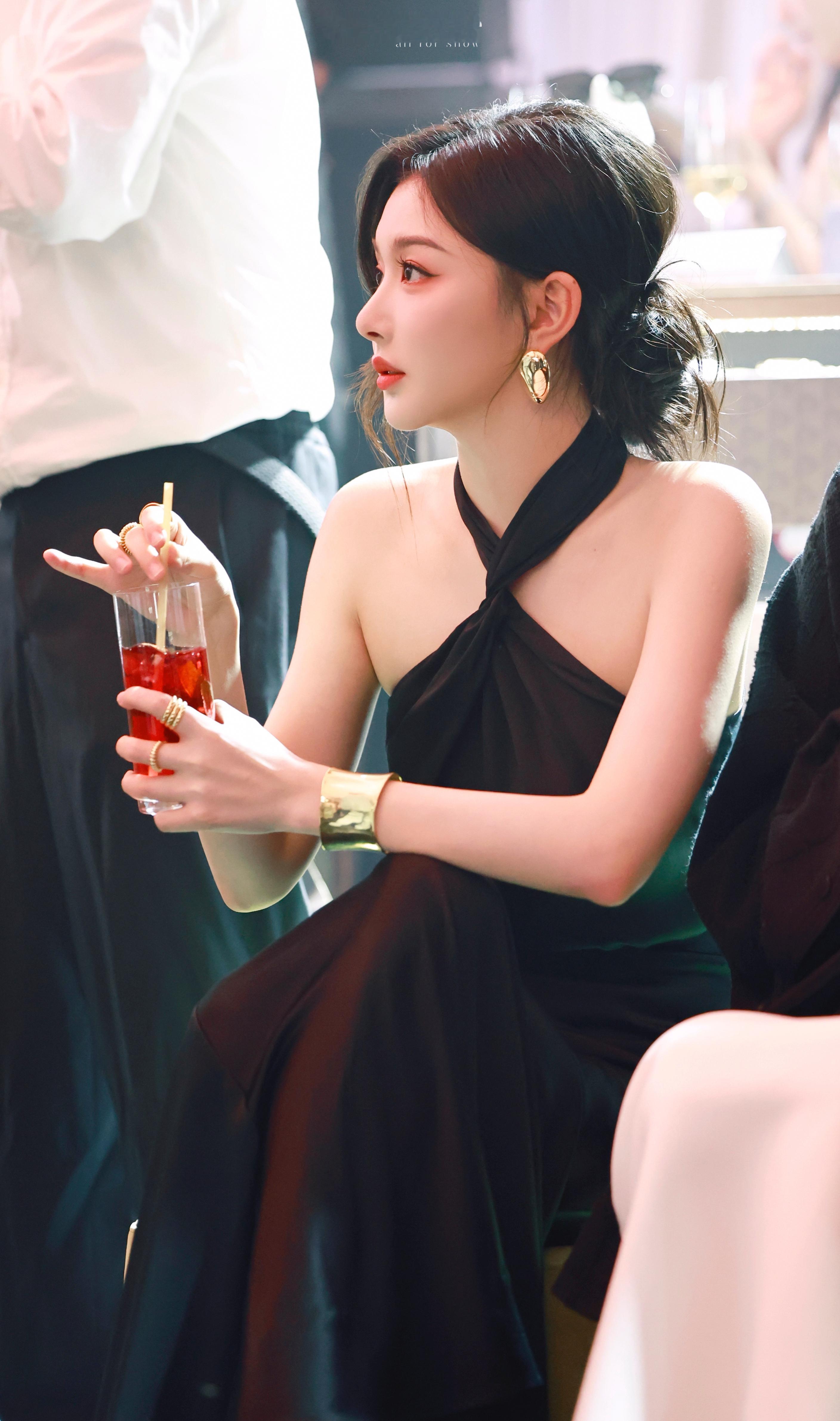 孔雪儿 挂脖黑裙衬着肌肤胜雪,侧头抬眸,眼尾的红与唇色相衬,带着一丝漫不经心的温柔,在光影里成了焦点。2024.5.24