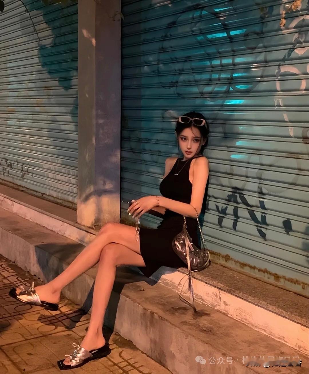 黑裙美腿简约到极致的美气质黑裙气质开叉黑裙露肩性感黑裙气质黑长裙时尚黑