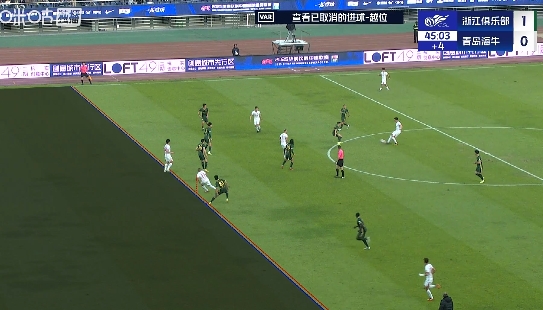 海牛1-1浙江!韦林顿单刀破门,边裁认定越位,但VAR改判不越位