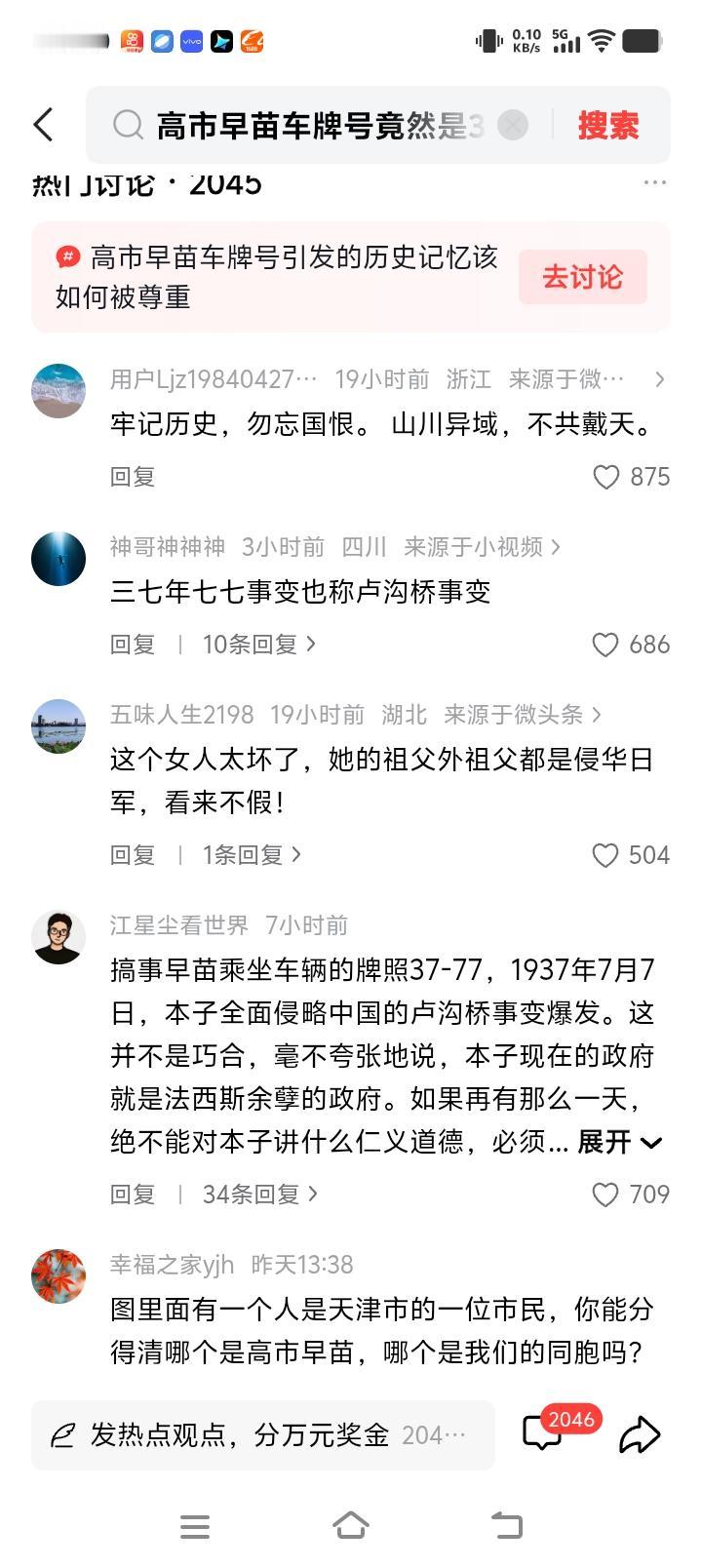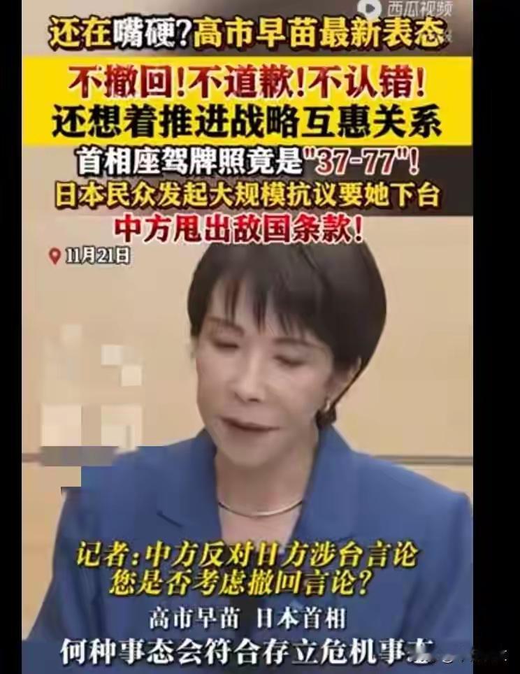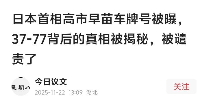 日本首相高市早苗车牌惊现37-77暗藏军国主义密码!天津市民街头撞脸高市早苗引爆网络对峙 (来源:今日议文) 当日本街头抗议者举起“反战”标语时,高市早苗公务车的牌照“37-77”悄然成为撕裂历史伤疤的利刃。这组数字如同幽灵般唤醒东亚集体记忆——1937年7月7日,卢沟桥的枪声揭开了日本侵华战争的黑暗序幕。如今,它竟出现在现任首相座驾上,仿佛一场跨越时空的挑衅。 东京街头的大学生举着“拒绝战争经济”的纸板,上班族在社交媒体痛斥“愚蠢的政治赌注”,而主妇们则在超市涨价标签前沉默。这场席卷日本各阶层的抗议,与其说是对车牌数字的恐惧,不如说是对历史重演的绝望预判。他们记得“小男孩”与“胖子”降临的灼热,更清楚军国主义复活将把岛国拖入怎样的深渊。 高市早苗的强硬姿态与车牌事件形成诡异呼应。她拒不收回“台海有事即日本有事”的宣言,甚至在自民党内部会议上声称“数字巧合不应被过度解读”。但历史从不容许轻描淡写——当年刺刀下的南京城、细菌战里的腐烂伤口,早已将“37-77”刻成东亚文明共同的疼痛基因。 更戏剧性的对比发生在天津街头。一位博主妻子因酷似高市早苗的照片引爆网络,网友戏称“天津分苗”。当东方明珠的霓虹映照着相似面容,两个民族的命运却在政治博弈中走向岔路。有市民苦笑:“她只是长得像,可别把军国主义魂也装进来。” 深挖车牌背后的权力密码,会发现更惊人的隐喻。日本右翼势力长期操纵历史叙事,从教科书删除慰安妇记录到参拜靖国神社,如今首相座驾数字更像某种意识形态宣誓。但民众的觉醒超乎想象——大阪商人在论坛写道:“我们不想替祖辈赎罪,但绝不能重蹈覆辙。” 中日民间情绪正在经历冰火碰撞。中国网友在“37-77”话题下刷屏“勿忘卢沟晓月”,日本网红则拍摄“和平鸽穿越广岛原爆穹顶”的短视频。当高市早苗在议会强调“强化美日同盟”时,东京涩谷的年轻人正举着“亚洲命运共同体”的横幅走过十字路口。 经济制裁的达摩克利斯之剑已然悬空。日本汽车业股票三日暴跌12%,北海道渔民看着滞销的三文鱼摇头:“政治家的游戏,总让普通人买单。”而隐藏在抗议浪潮背后的,是民众对安倍晋三遇刺事件的集体创伤——当暴力成为政治对话的语言,整个社会都将付出代价。 历史的回响从不会缺席。那位被戏称“天津分苗”的女士最终发布视频,手握国旗说出“长相是父母给的,但爱国是自愿的”。这条获赞百万的内容,恰似对车牌事件最犀利的回应:无论面貌如何相似,对和平的坚守才是跨越国界的通行证。 中日关系 历史警示