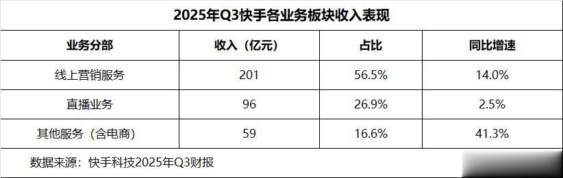 在整个行业广告需求波动的背景下,快手的线上营销业务展现出强劲韧性,依旧保持14%的增长,收入达到201亿元。